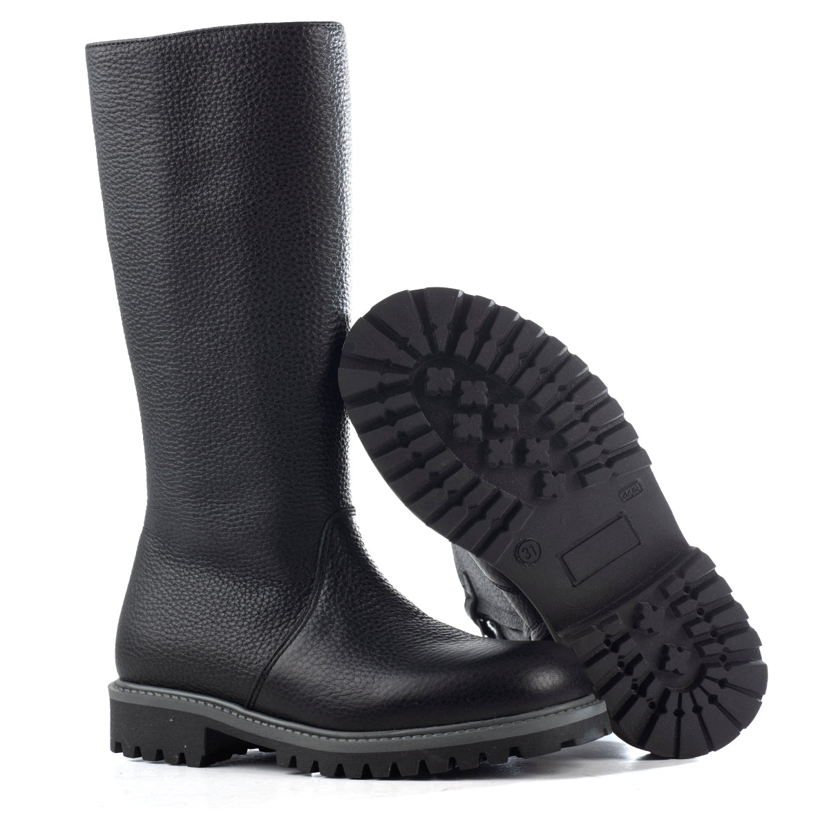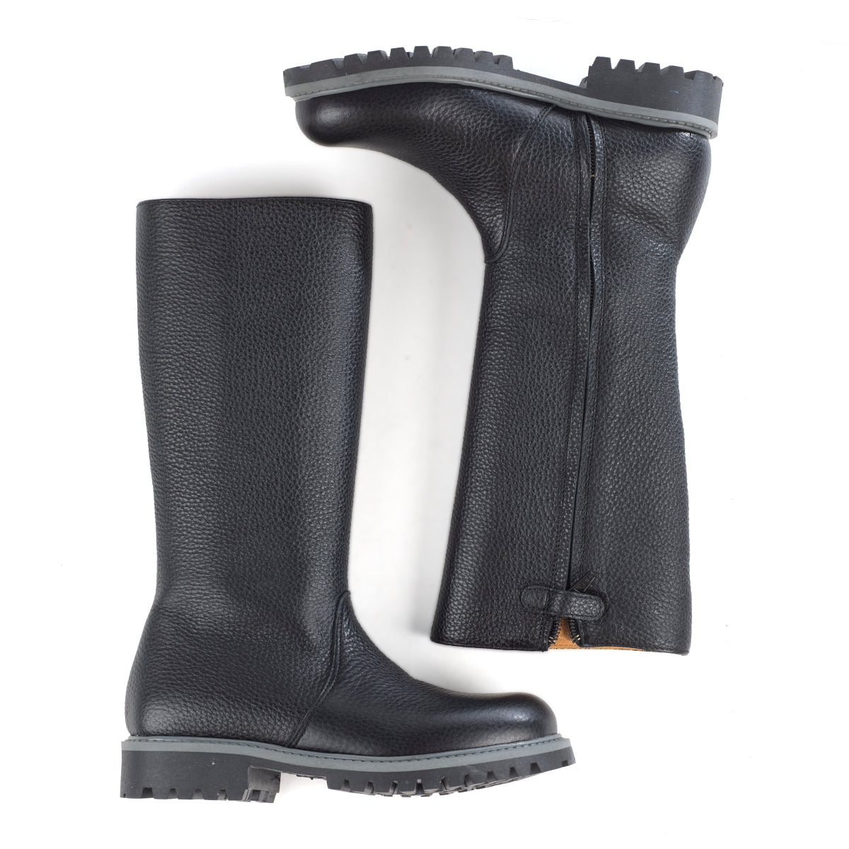 This black suede aboot is crafted from elk leather and features a distinctive print, complemented by a soft sheepskin lining for enhanced comfort. It features a durable rubber sole and an ergonomic insole that supports healthy posture. Made in Italy by experienced artisans from natural materials, it offers a refined blend of quality and style, prioritizing both comfort and elegance for your child.