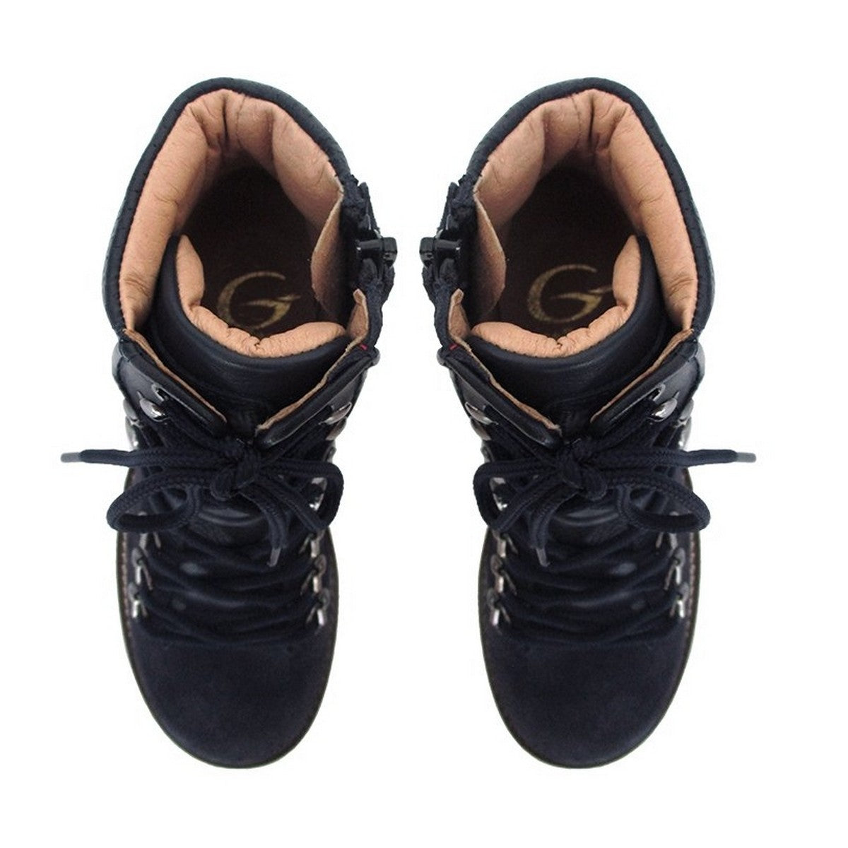 These expertly crafted boots combine blue calfskin and suede leather, designed for winter comfort and style. Handmade in Italy by skilled artisans using natural materials, they ensure durability and your child's well-being. The rubber sole provides excellent stability, while the ergonomic insole supports proper posture, making these boots both chic and functional for growing feet.