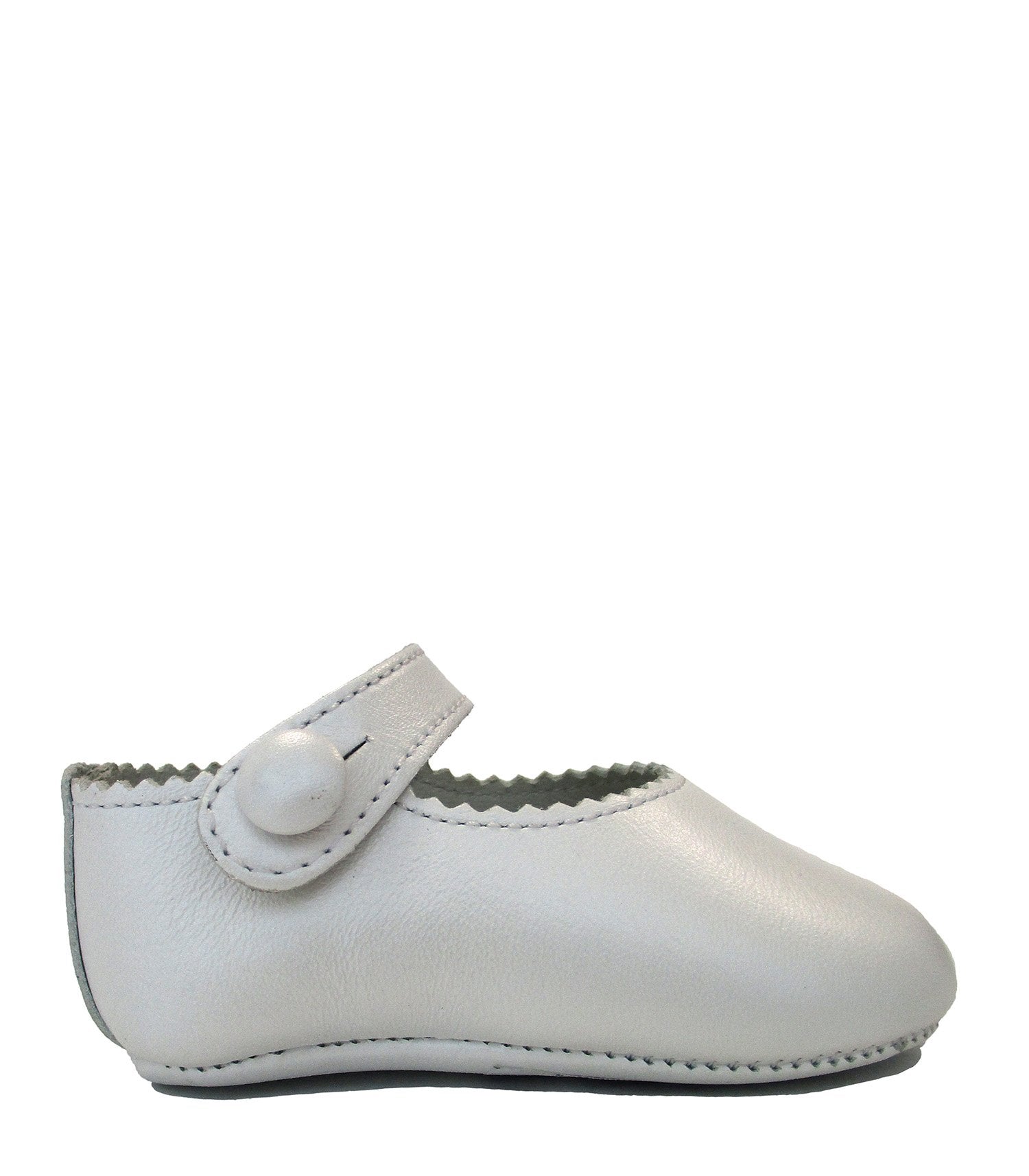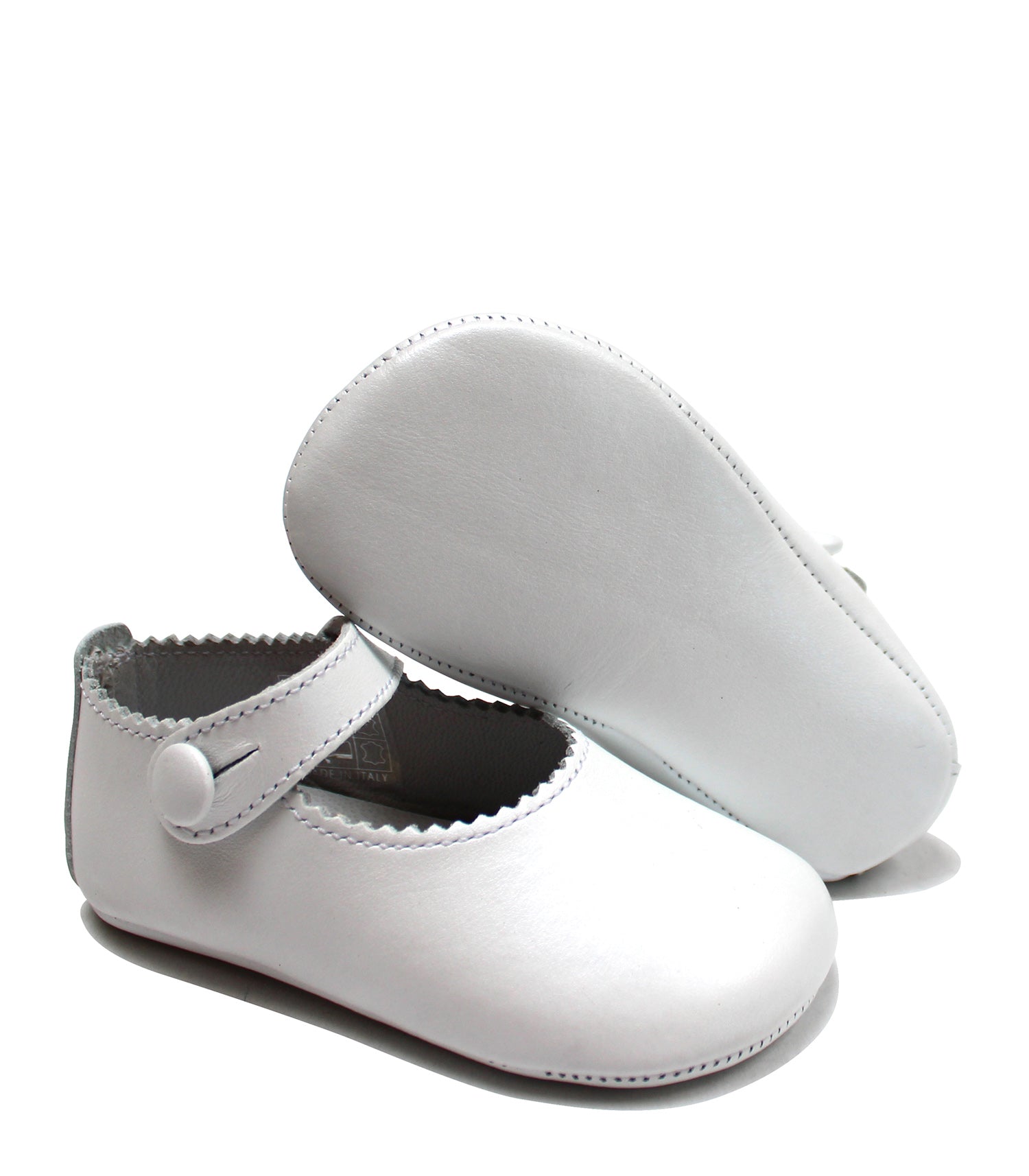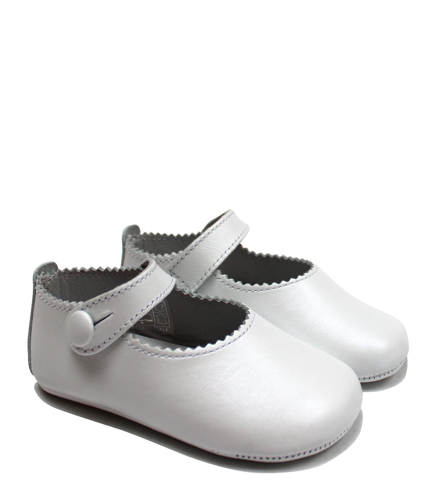 Crafted from calfskin leather, these pearl shoes feature a stylish button closure on top. Expertly made in Italy by our artisans using natural materials, they ensure both exceptional quality and your child's comfort.