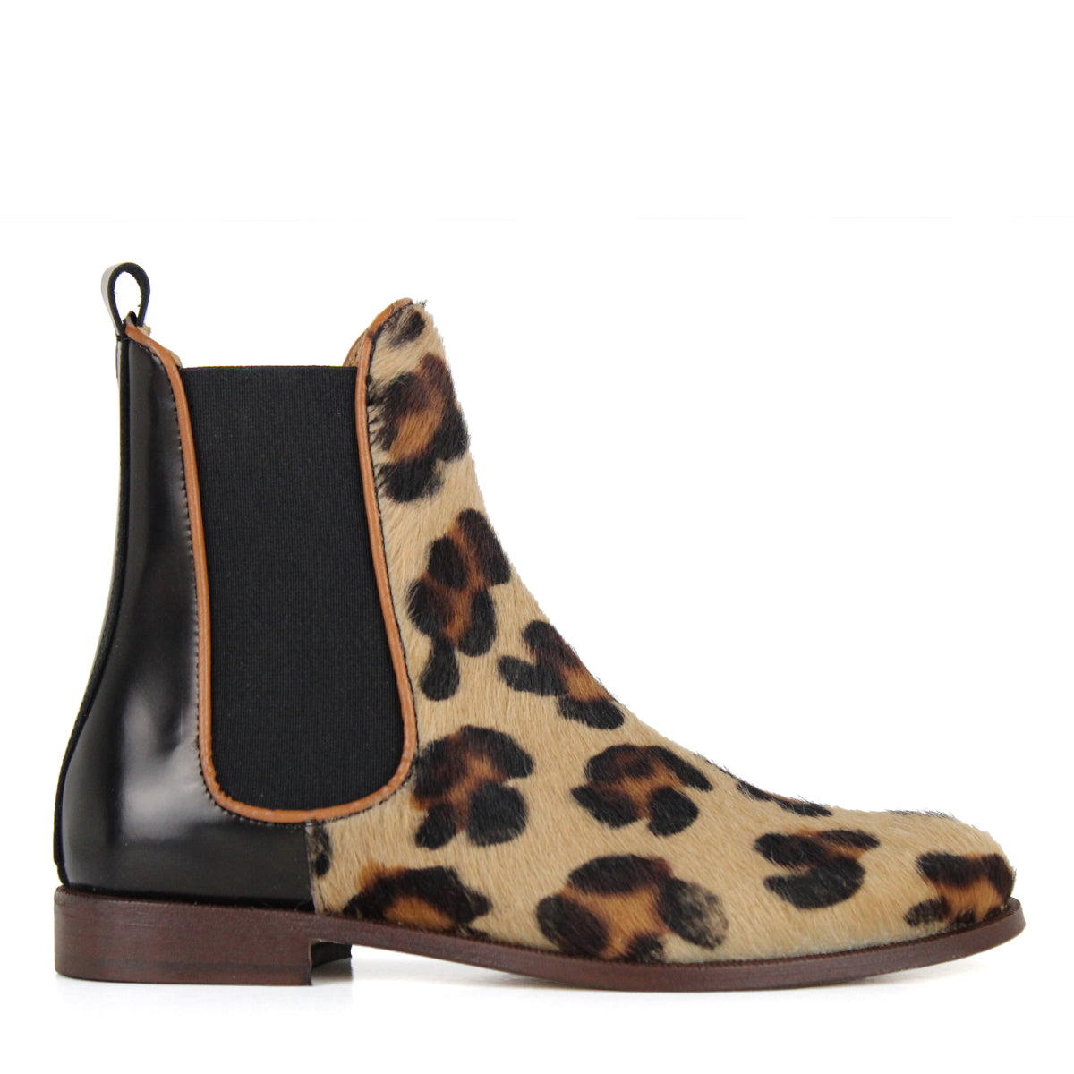 Chelsea boot crafted from brushed calfskin and spotted pony skin, featuring a leather sole and ergonomic insole for optimal comfort. Expertly made in Italy by our artisans using natural materials to support your child's well-being and posture. A refined, high-quality choice that combines elegance with thoughtful design.