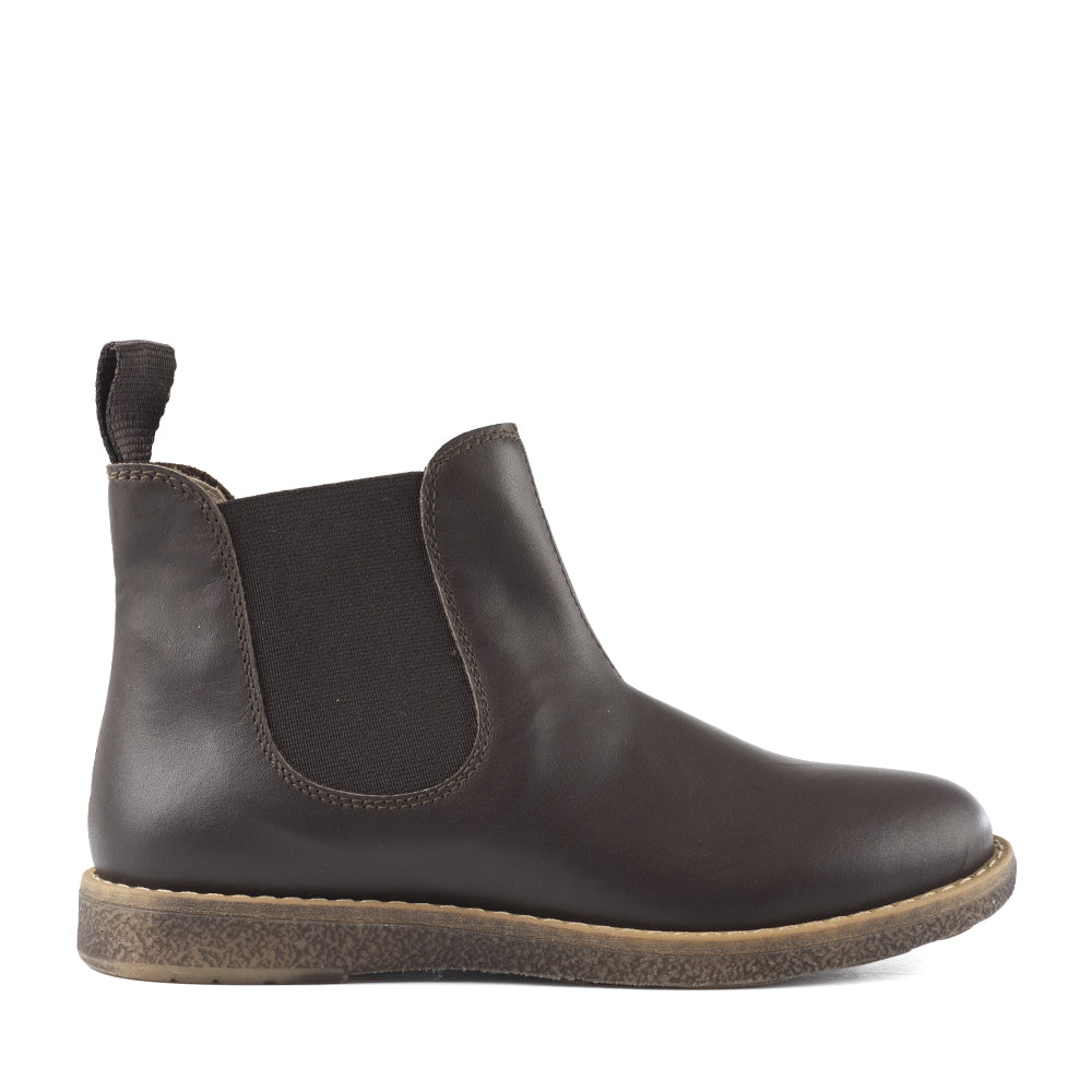 Exquisite brown calfskin Chelsea boots featuring a supportive rubber sole and anatomically designed footbed. Handcrafted in Italy using premium natural materials selected to enhance your child's wellbeing and proper posture development. These refined boots combine sophisticated elegance with exceptional Italian craftsmanship.