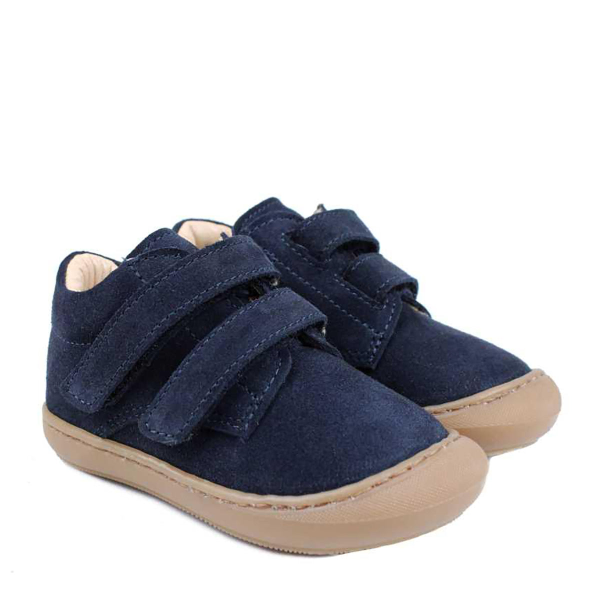 Exquisite first steps footwear crafted from premium blue suede leather, featuring dual velcro closures and a supportive rubber sole. Meticulously handcrafted in Italy by skilled artisans using natural materials to ensure your baby's optimal comfort and wellbeing. Thoughtfully designed to promote proper posture development while embodying refined elegance and superior craftsmanship.