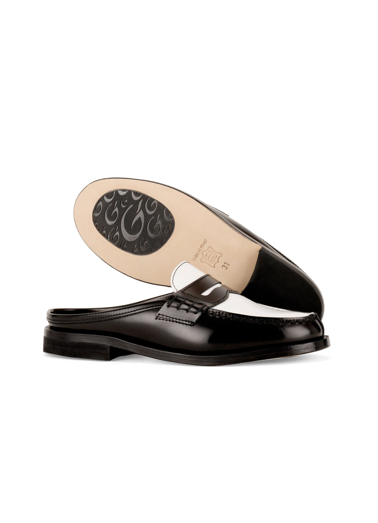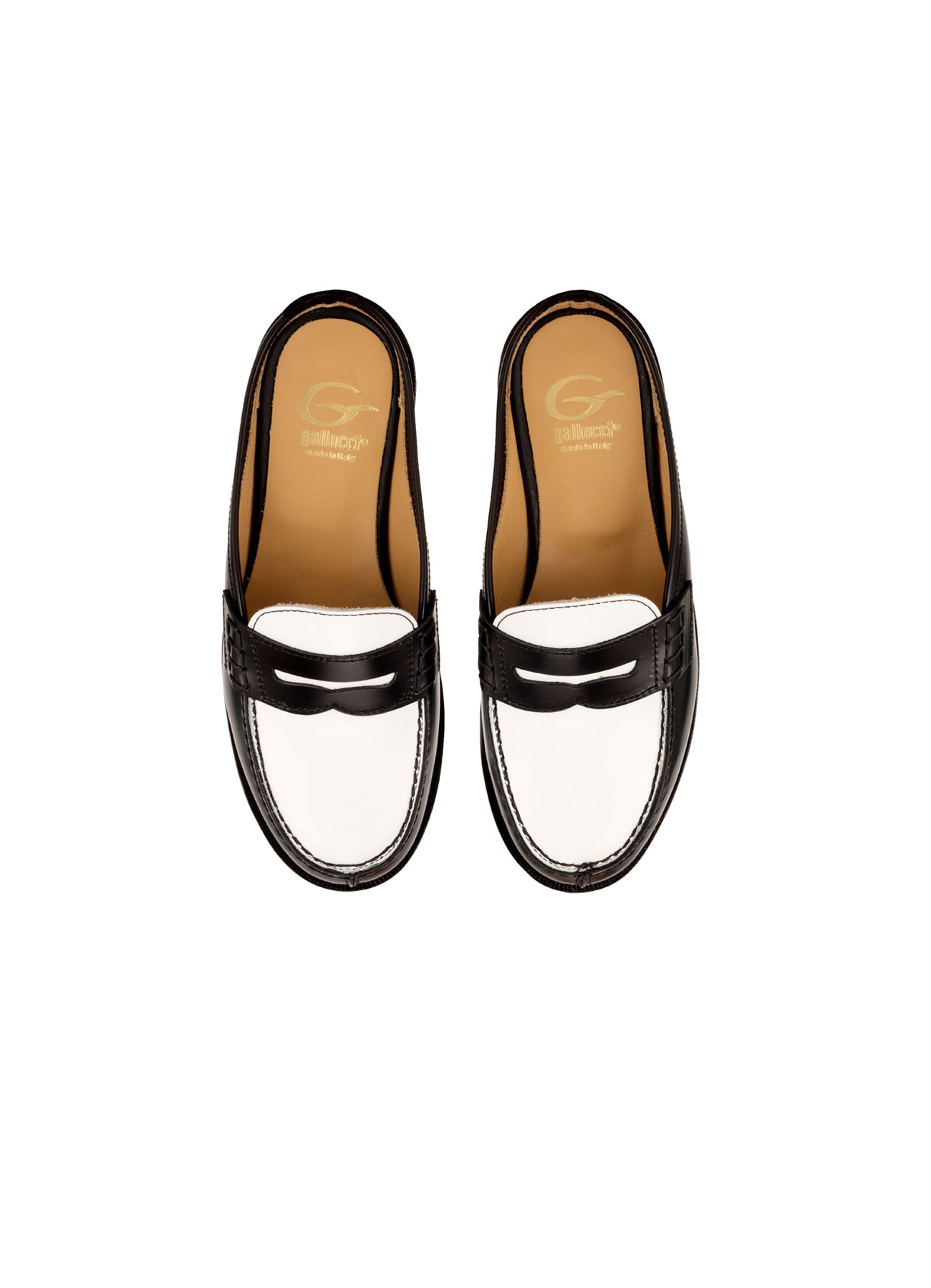 This flat penny loafer features white and black calfskin leather with an animalier pattern, crafted in Italy by skilled artisans using natural materials to ensure quality and your child's comfort. The rubber sole provides excellent stability, while the ergonomic insole supports proper posture. Stylish and thoughtfully designed, it’s the perfect choice for your child’s well-being and elegance.