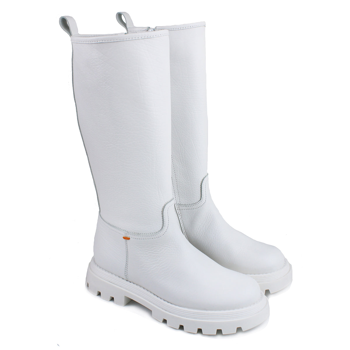 This elegant white buffalo leather boot features a durable rubber sole and an ergonomic insole designed for optimal comfort. Crafted in Italy by skilled artisans using natural materials, it supports your child's posture while offering a refined, high-quality look. Perfect for those who appreciate both style and well-being.
