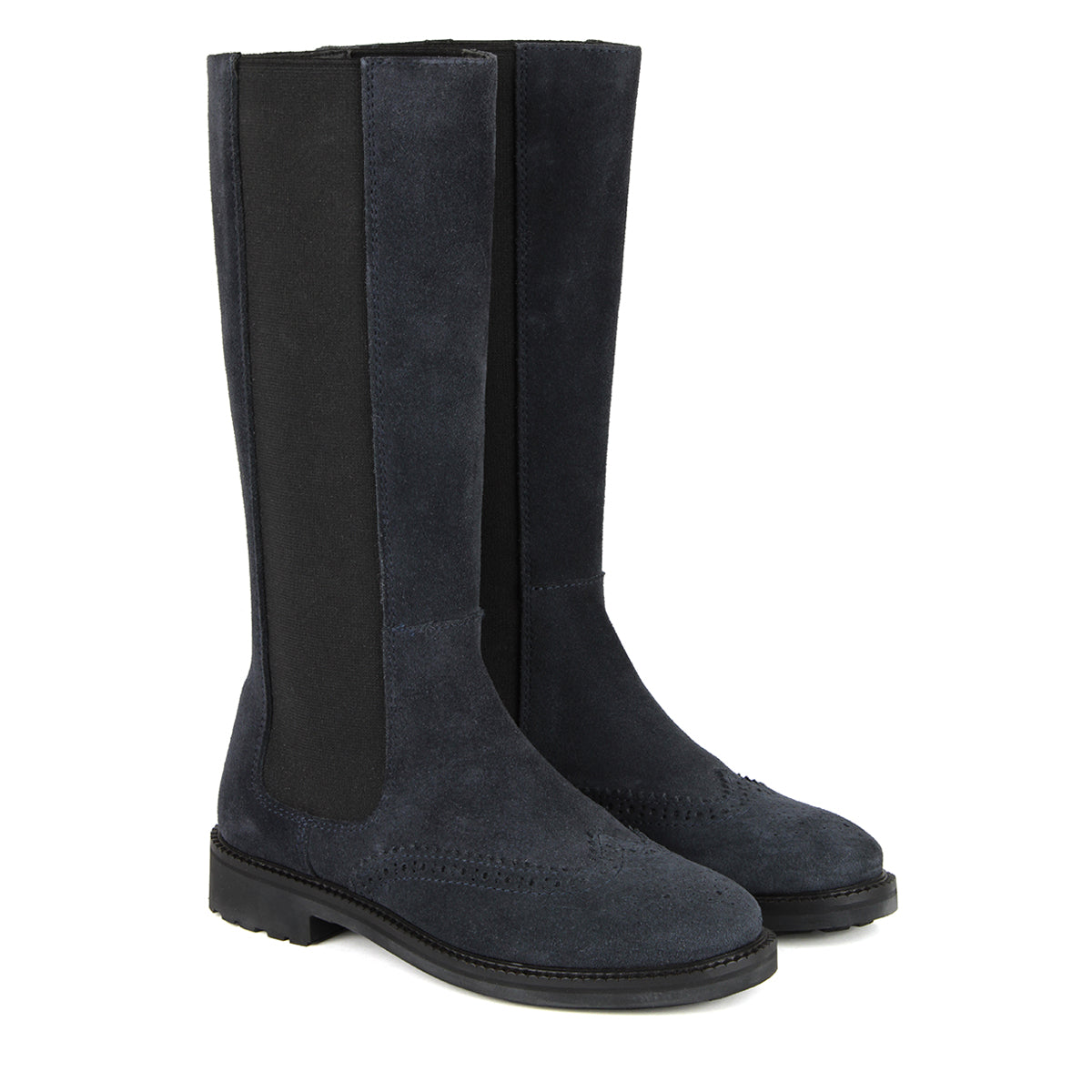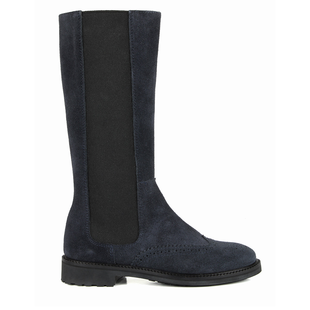 Exquisite blue suede Chelsea boots crafted with precision in Italy. These elegant footwear pieces feature a supportive rubber sole and ergonomic insole, meticulously designed to promote proper posture and comfort for your child. Handmade by skilled artisans using premium natural materials, they combine sophisticated style with exceptional quality for your little one's well-being.