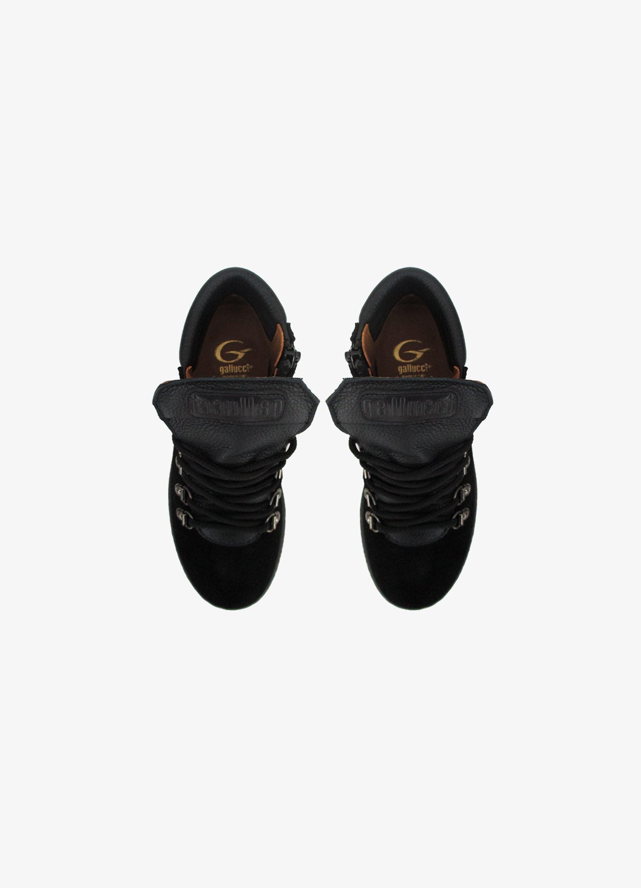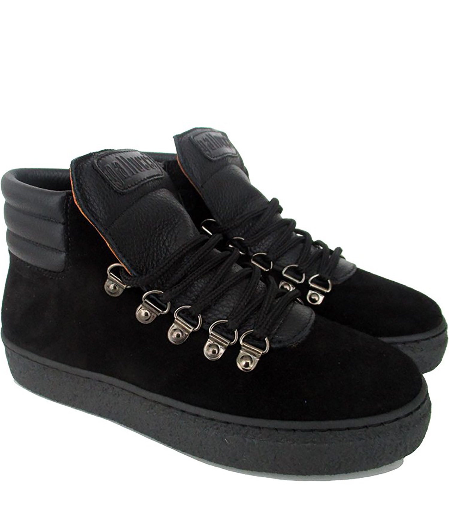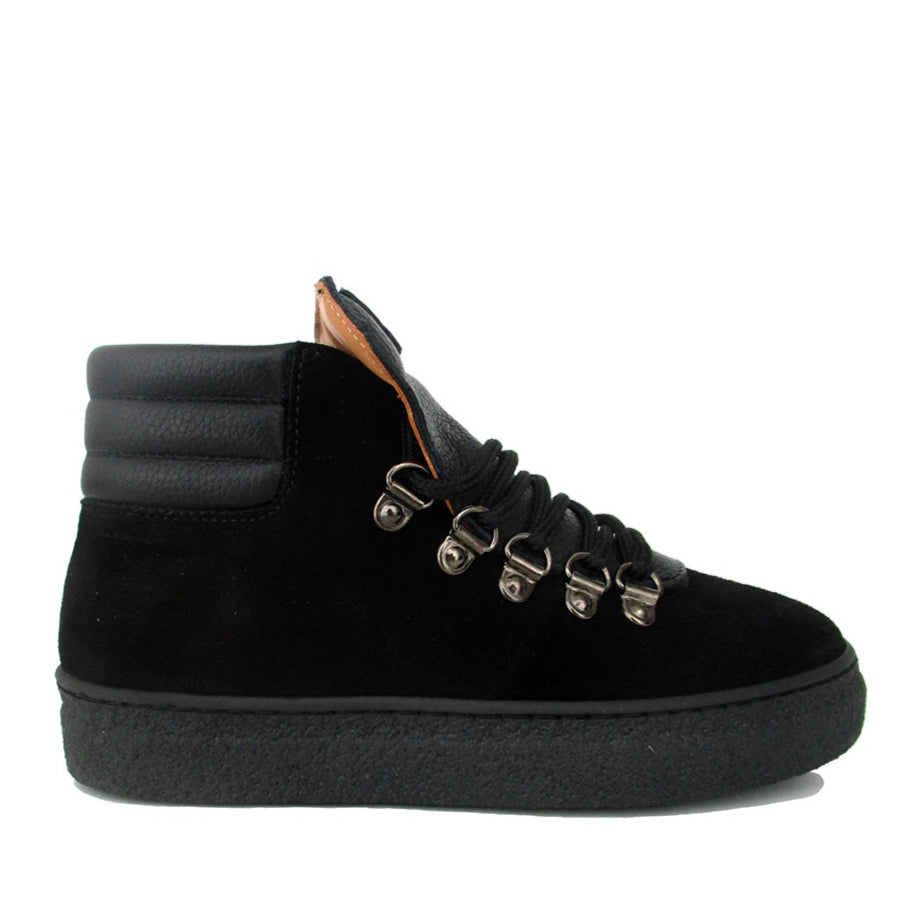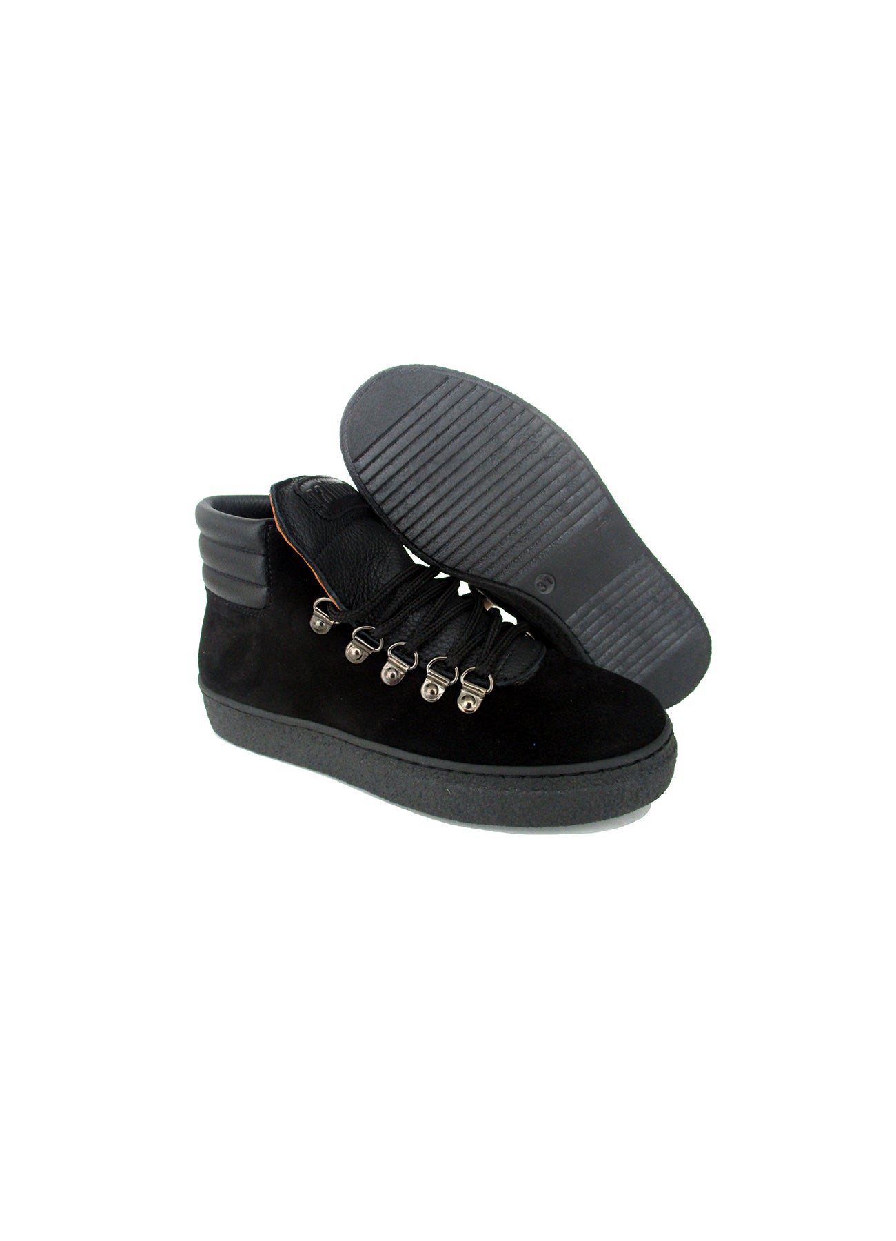 These high-top sneakers combine black velour and black elk leather, crafted in Italy by skilled artisans using natural materials to ensure quality and your child's comfort. Featuring lace-up closure and a rubber sole for excellent stability, they are both stylish and supportive. Designed with an ergonomic insole, they promote healthy posture while keeping your child looking chic.