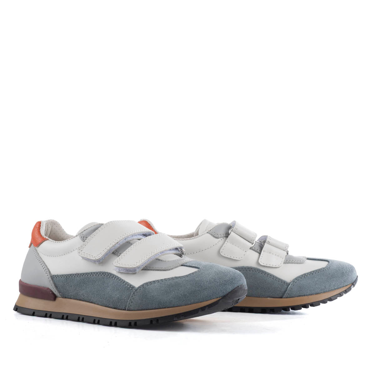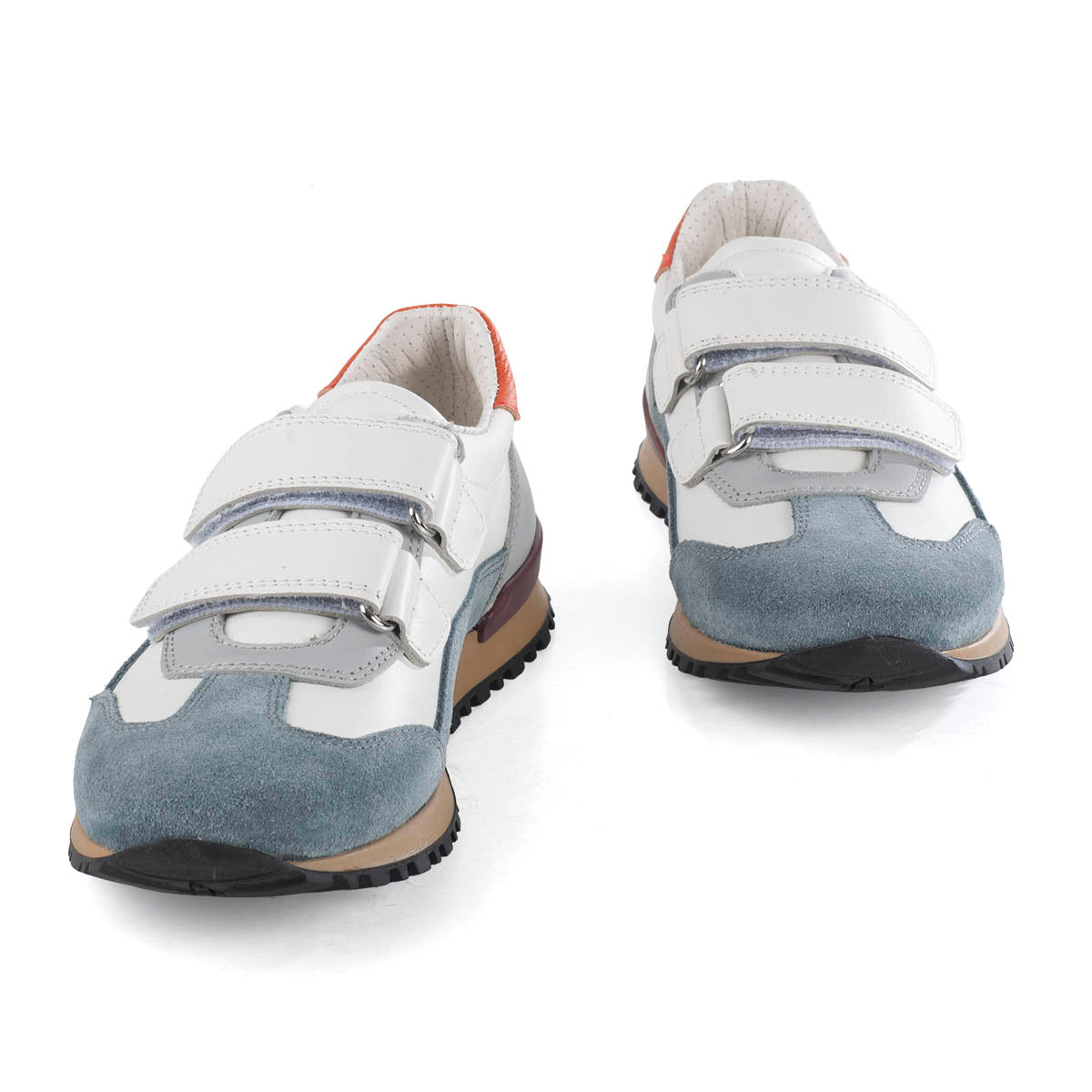 These multicolour sneakers feature dual Velcro straps crafted from white calfskin leather, combined with grey, black, and orange suede accents, perfectly suited to your child's style. Expertly handmade in Italy by our artisans using natural materials, they ensure exceptional quality and comfort. The rubber sole provides reliable stability, while the ergonomic insole supports healthy posture for your child.