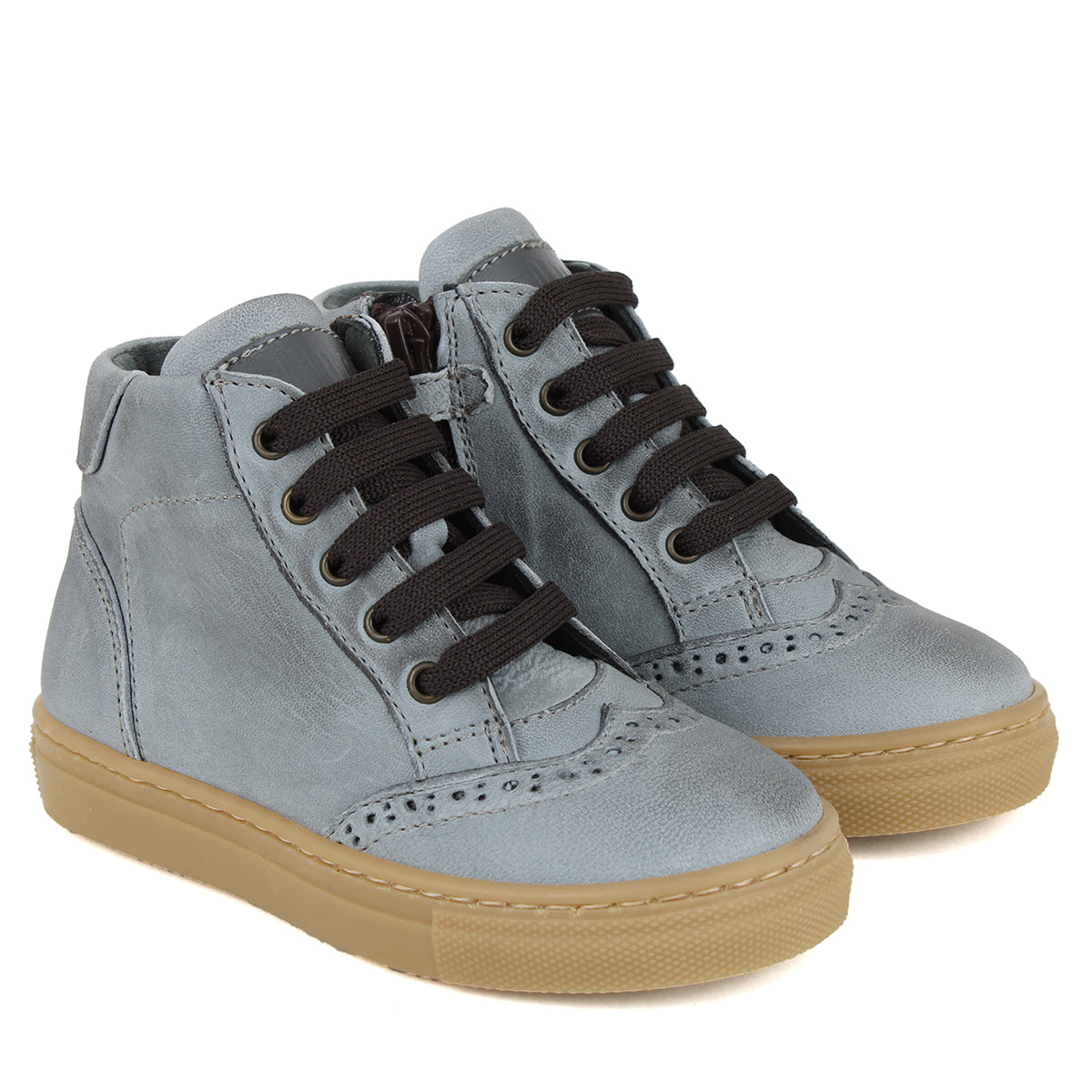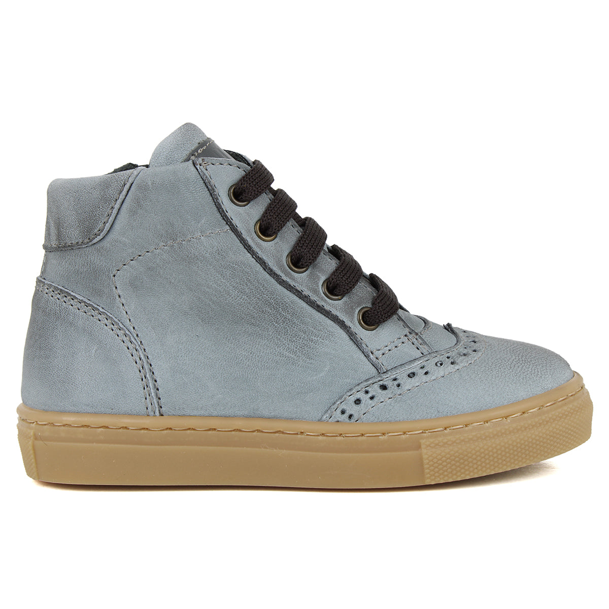These light blue suede sneakers with black laces are perfect for your child's first steps. Crafted in Italy by skilled artisans using natural materials, they ensure both quality and comfort. The rubber sole provides excellent stability, while the ergonomic insole supports your child's posture. Stylish and thoughtfully designed, these shoes combine elegance with well-being.
