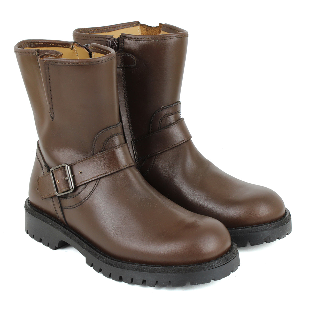 Exquisitely crafted in Italy, these brown calfskin leather biker boots feature elegant buckle closures and refined design elements complemented by a practical rubber sole. Meticulously handcrafted by skilled artisans in the Gallucci workshop, these sophisticated boots incorporate natural materials specifically chosen to support your child's developing posture and overall wellbeing. The exceptional craftsmanship ensures superior quality for discerning parents.