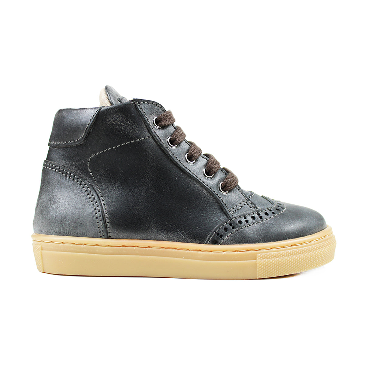 Exquisite high-top leather sneakers crafted for baby's first steps. Featuring an ergonomic insole and premium rubber sole, these sophisticated Italian-made shoes support proper posture development. Meticulously handcrafted by our artisans using natural materials to nurture your child's well-being while delivering uncompromising elegance and quality.
