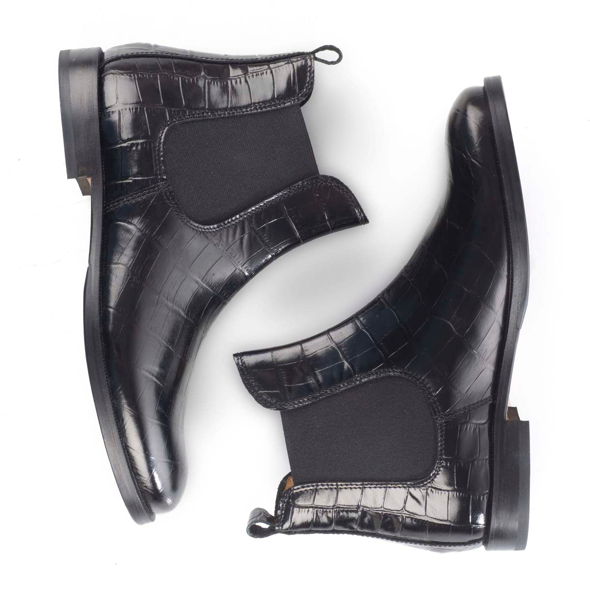Chelsea Boot in Black Calfskin Crocodile Print Leather
