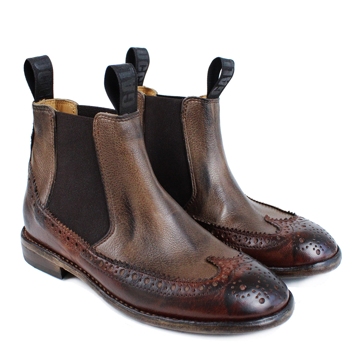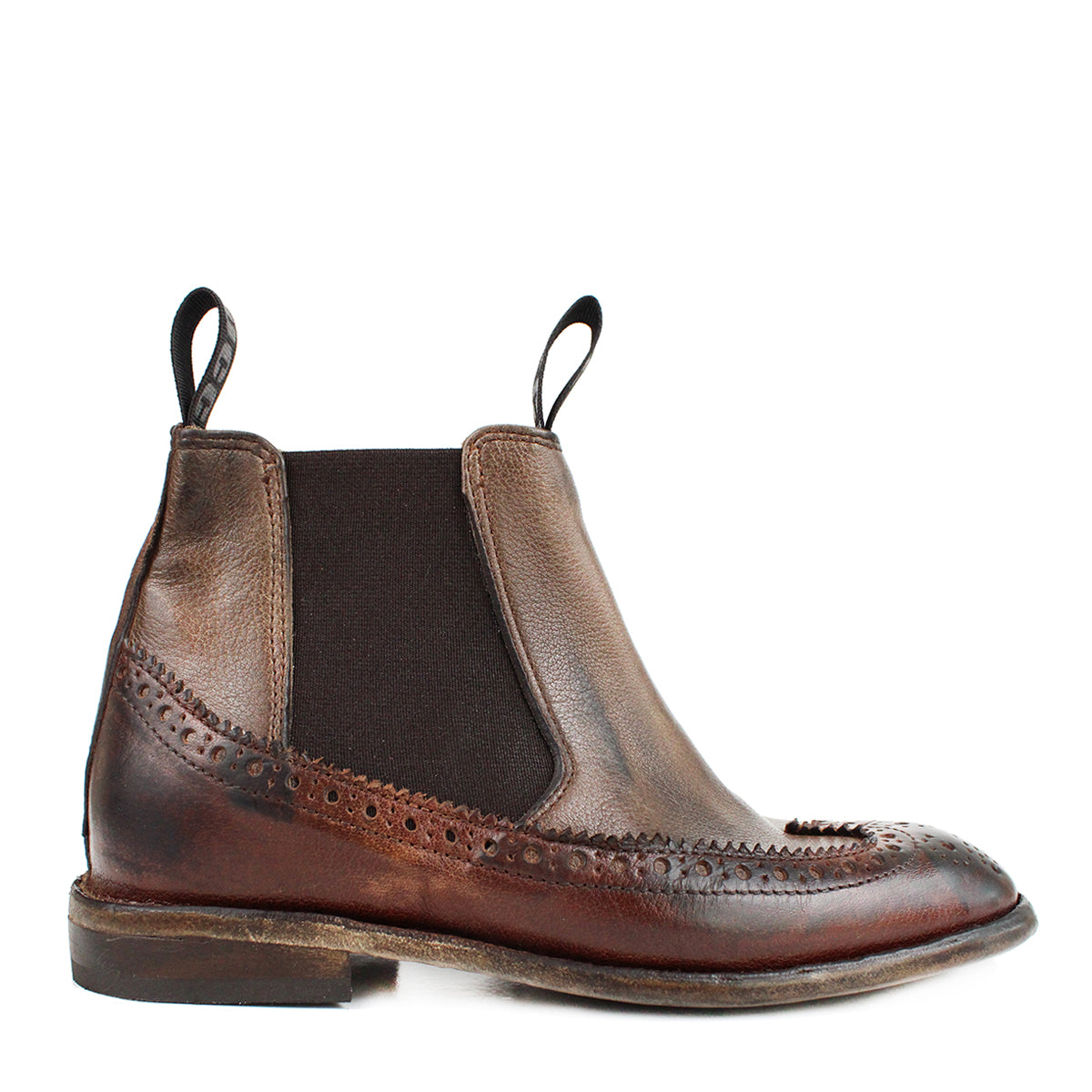 Brogue Chelsea Boots in Hand-dyed Brown Calfskin Leather