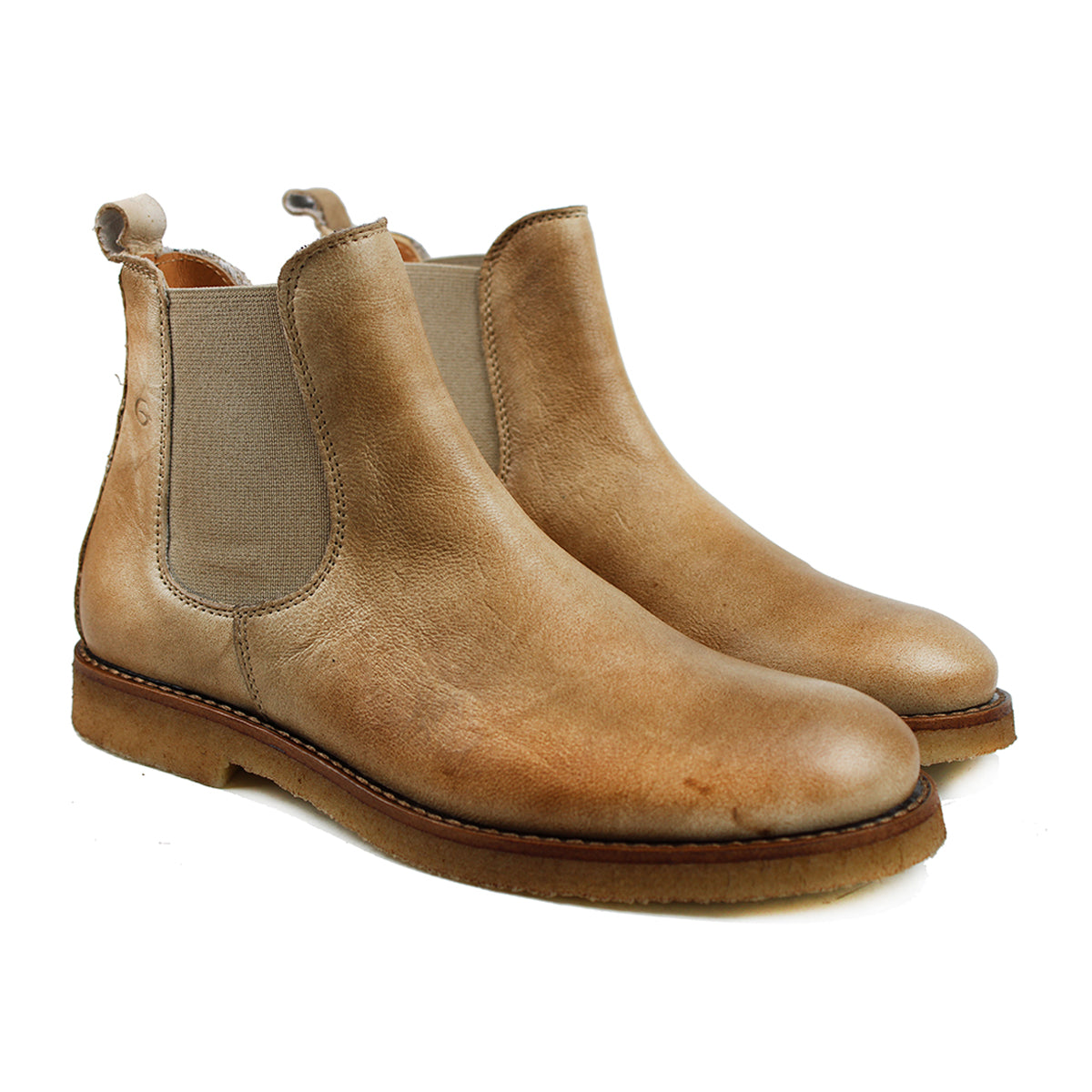 This Chelsea boot features hand-dyed leather for a unique vintage look and a rubber sole crafted in Italy by a skilled artisan. Designed with care, it also encourages you to prioritize your children's well-being.n