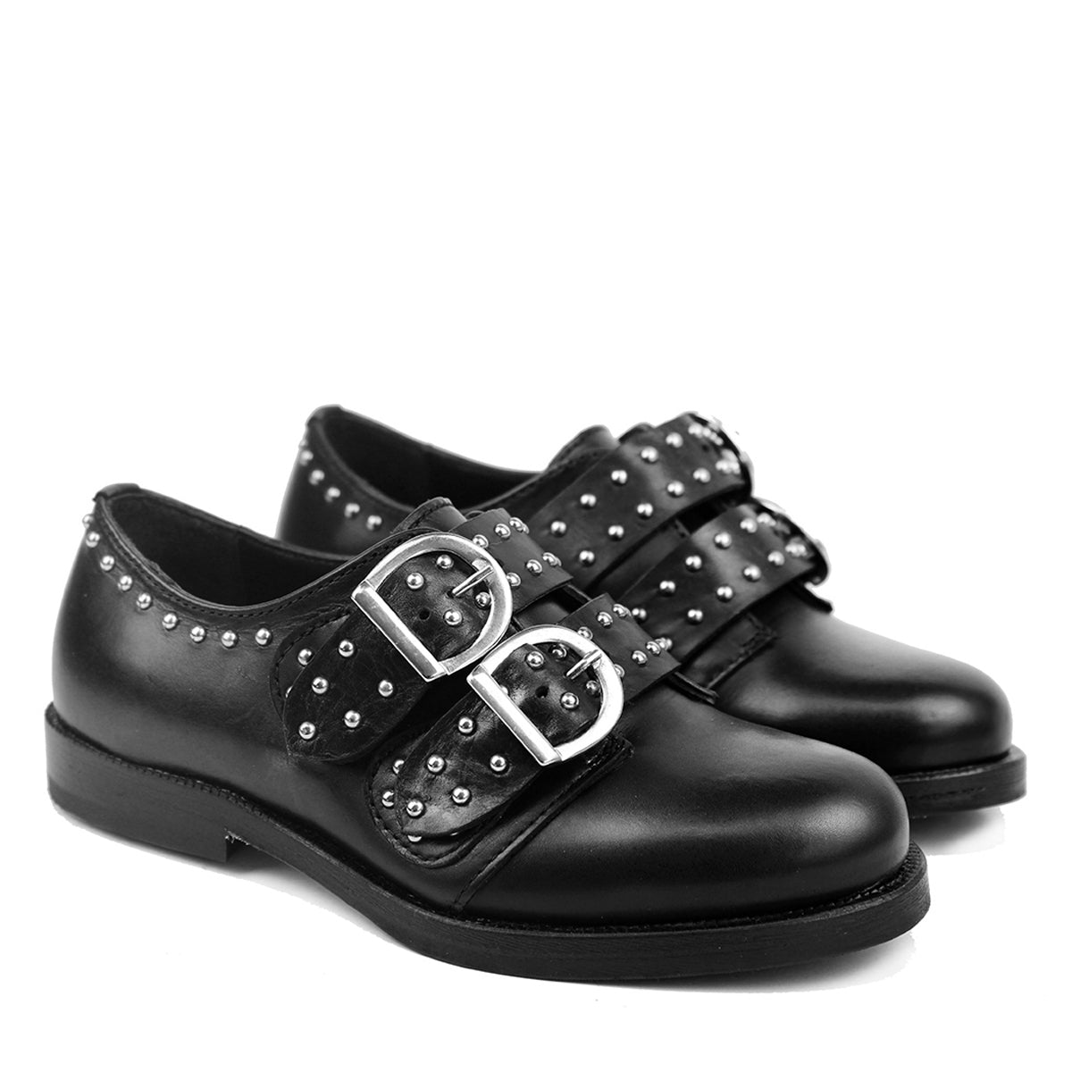 Elegant derby shoes crafted from black calfskin leather, featuring a double buckle design and refined accessories. These shoes offer a leather sole and an ergonomic insole for optimal comfort. Made in Italy by skilled artisans using natural materials to support your child's well-being and posture. A sophisticated choice combining style and superior quality.