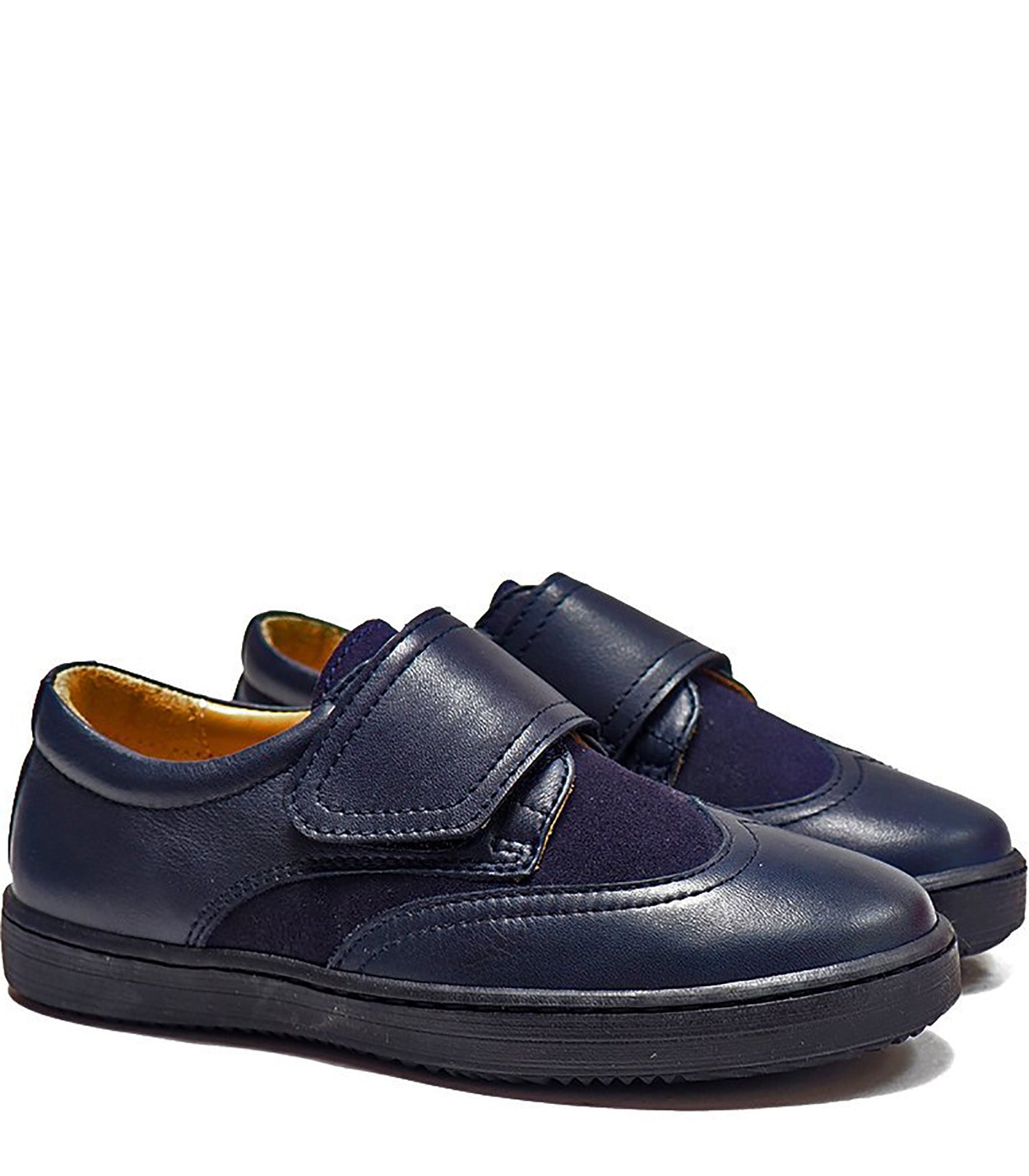 Sneakers featuring a single strap design crafted from blue kip leather and blue velour.