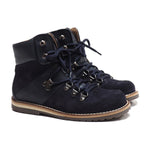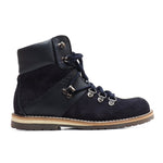 These expertly crafted boots combine blue calfskin and suede leather, designed for winter comfort and style. Handmade in Italy by skilled artisans using natural materials, they ensure durability and your child's well-being. The rubber sole provides excellent stability, while the ergonomic insole supports proper posture, making these boots both chic and functional for growing feet.