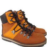 These boots combine tan calfskin leather and tan suede with laces, ideal for outdoor mountain adventures. Crafted in Italy by skilled artisans using natural materials, they ensure both quality and your child's comfort. The rubber sole provides excellent stability, while the ergonomic insole supports healthy posture. Stylish and thoughtfully designed for your child's well-being.