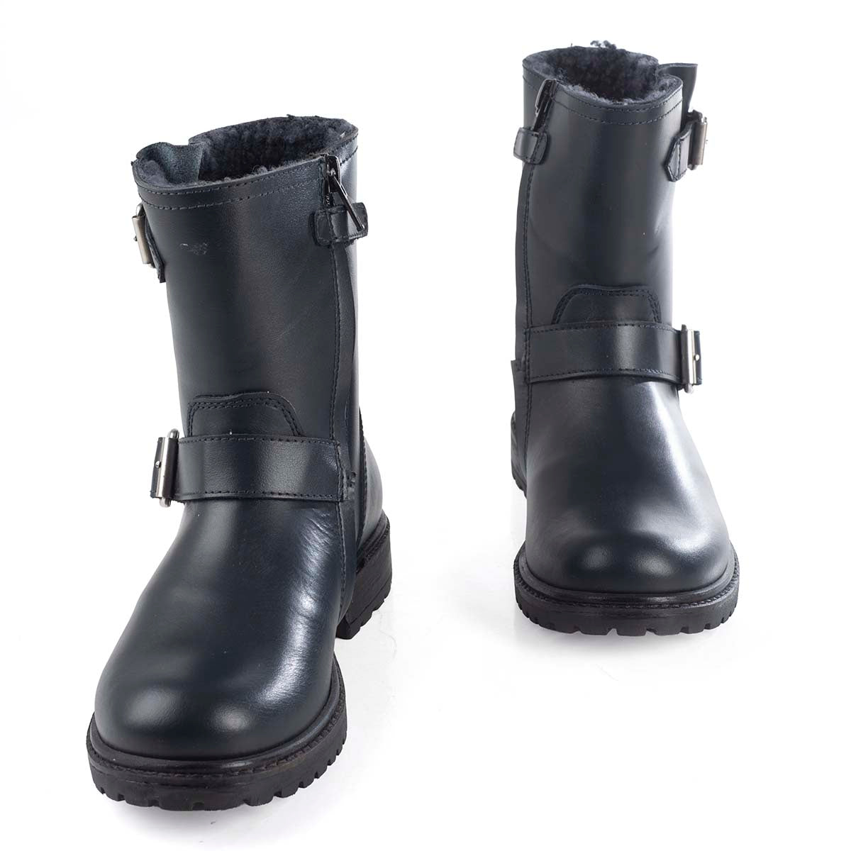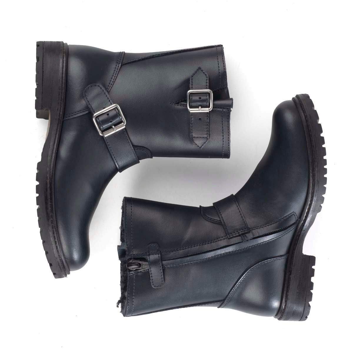 Boots in Blue Navy Calfskin Leather and Sheepskin Lining