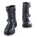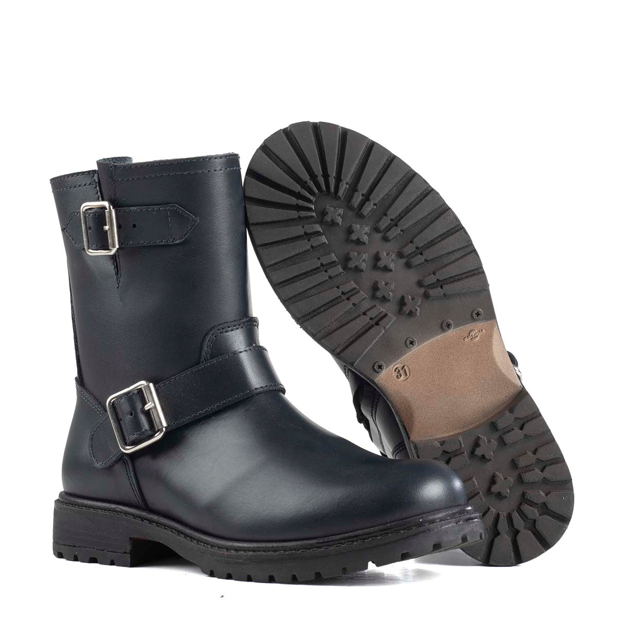 Expertly crafted in Italy, these navy blue calfskin leather boots with double buckles showcase refined design and a durable rubber sole that supports your baby's balance. Featuring a soft sheepskin lining, each pair is carefully handmade by skilled artisans to guarantee exceptional quality and encourage healthy posture. A perfect harmony of elegance and practicality for your child’s first strides.