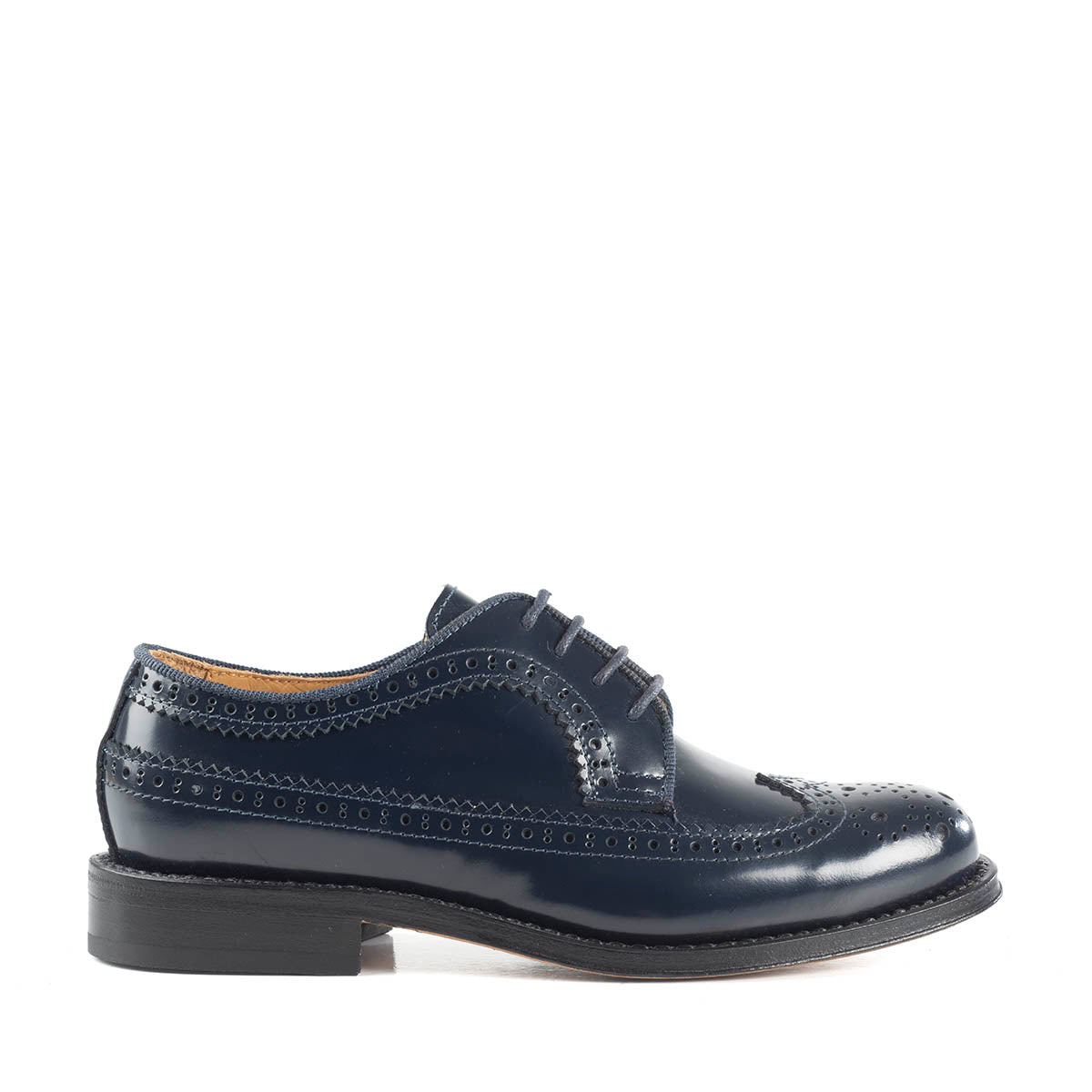 This laced derby brogue for kids features a laced design and a good year welt, made with high-quality blue calfskin leather. The leather lining and leather sole bring a touch of luxury to this Italian-made shoe.