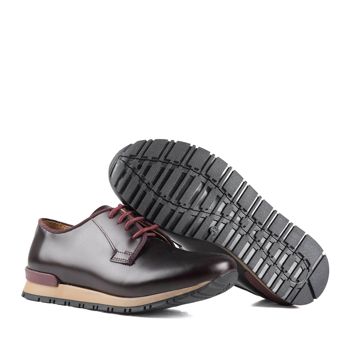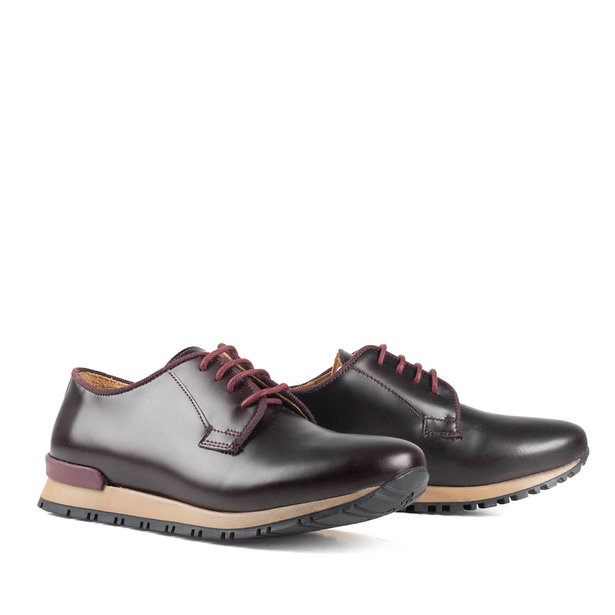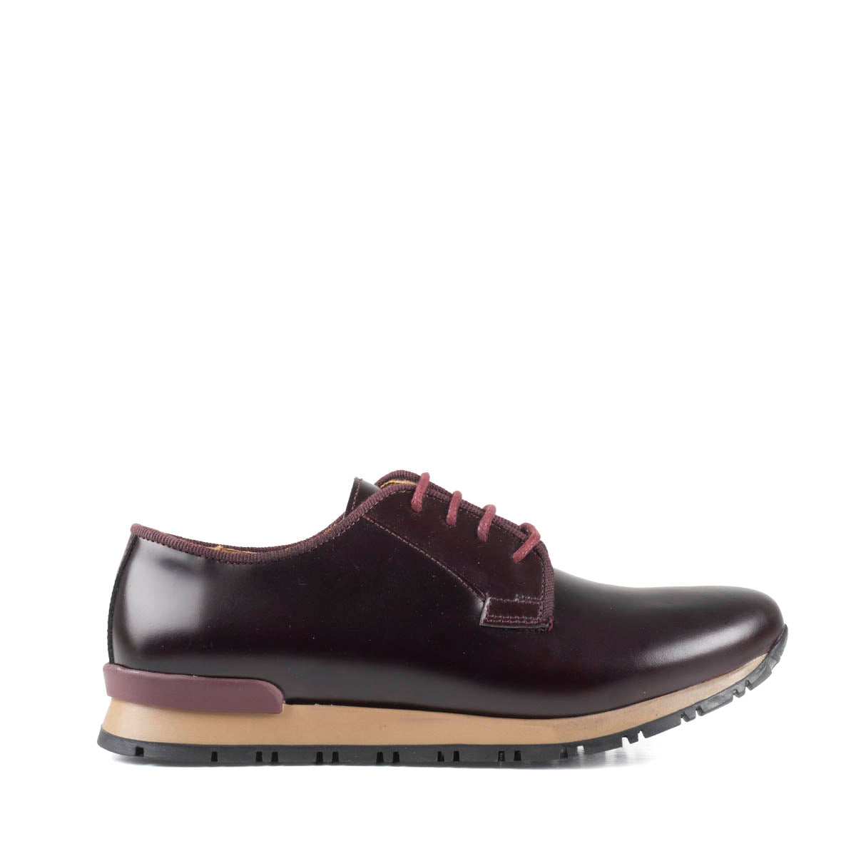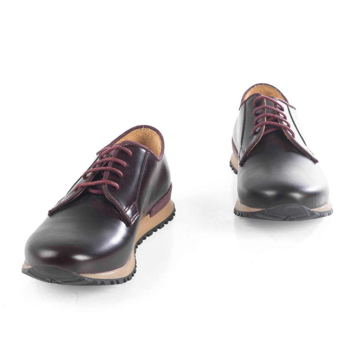 This burgundy calfskin leather sneaker combines elegant style with comfort. Certified by podologists, it provides excellent foot support and durability. The cushioned sole ensures stability and shock absorption, making it a sophisticated choice for everyday wear.