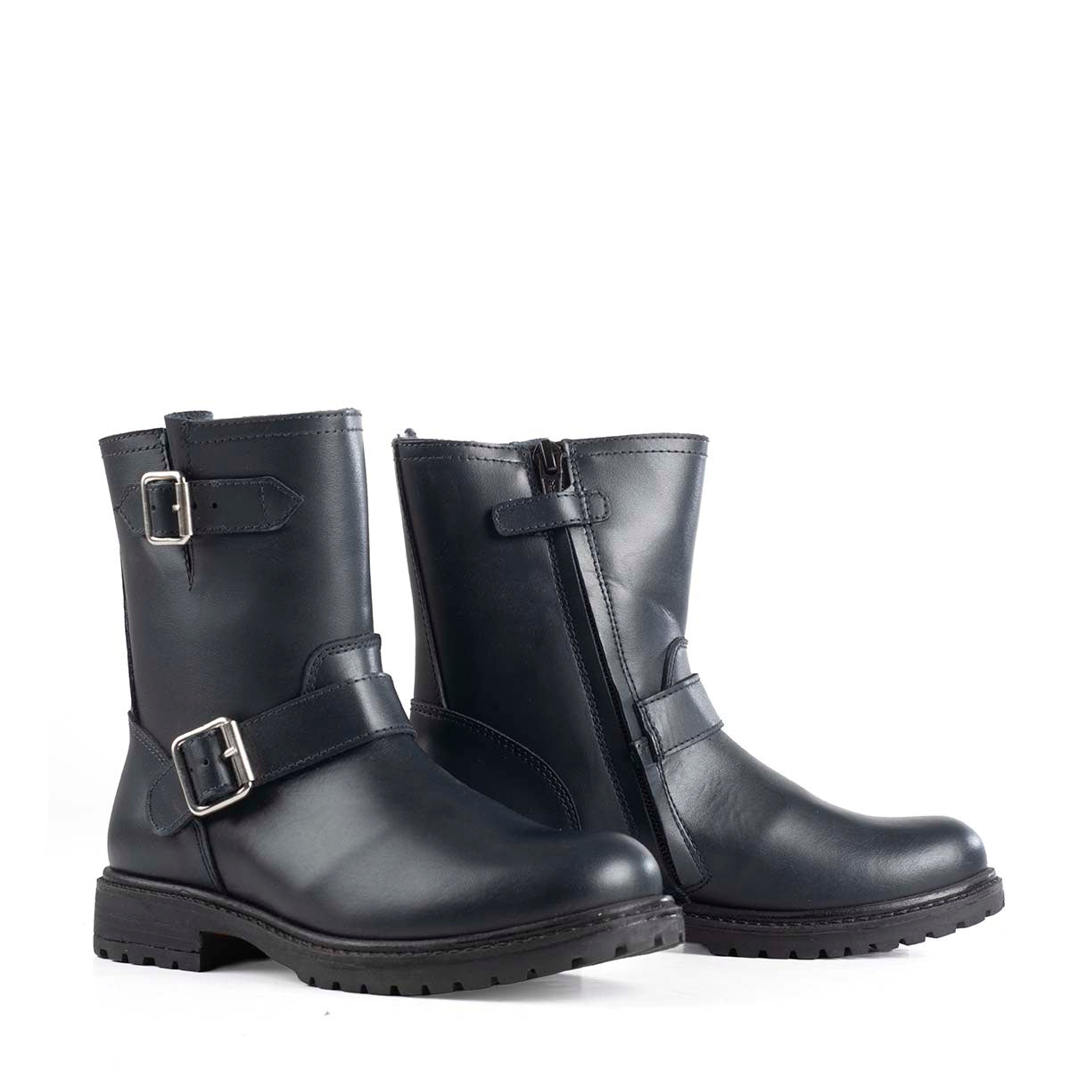 Boots in Blue Navy Calfskin Leather and Sheepskin Lining