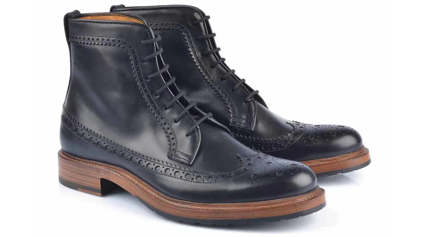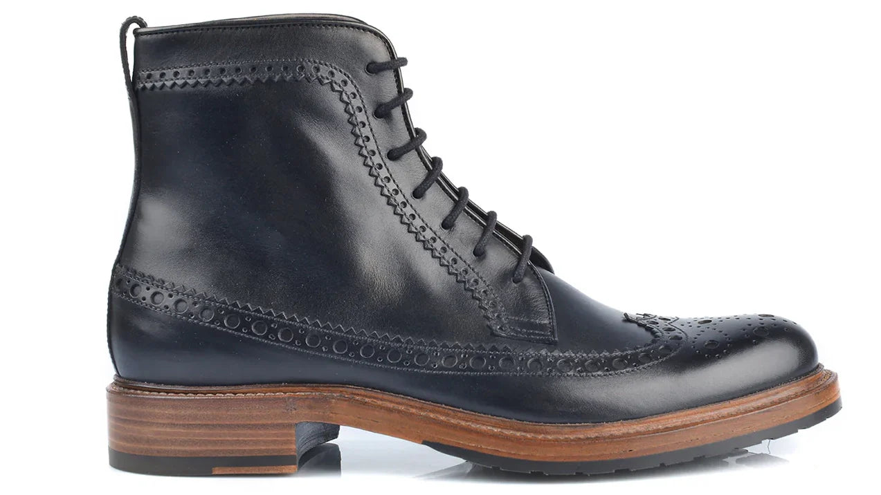 1164 Ettore Boot Brogue Calfskin Leather Black