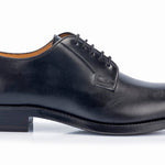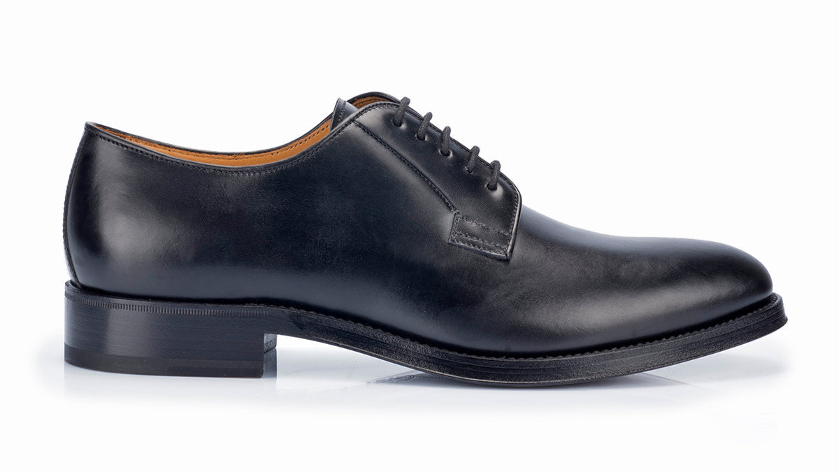 Smooth derby, Goodyear construction. Classic lines and proportionate volumes to this timeless shoe. The full-grain leather and the leather sole make it unique, but at the same time simple and elegant. Available on specific requests of leathers, colours, sizes and details in 10-15 working days.