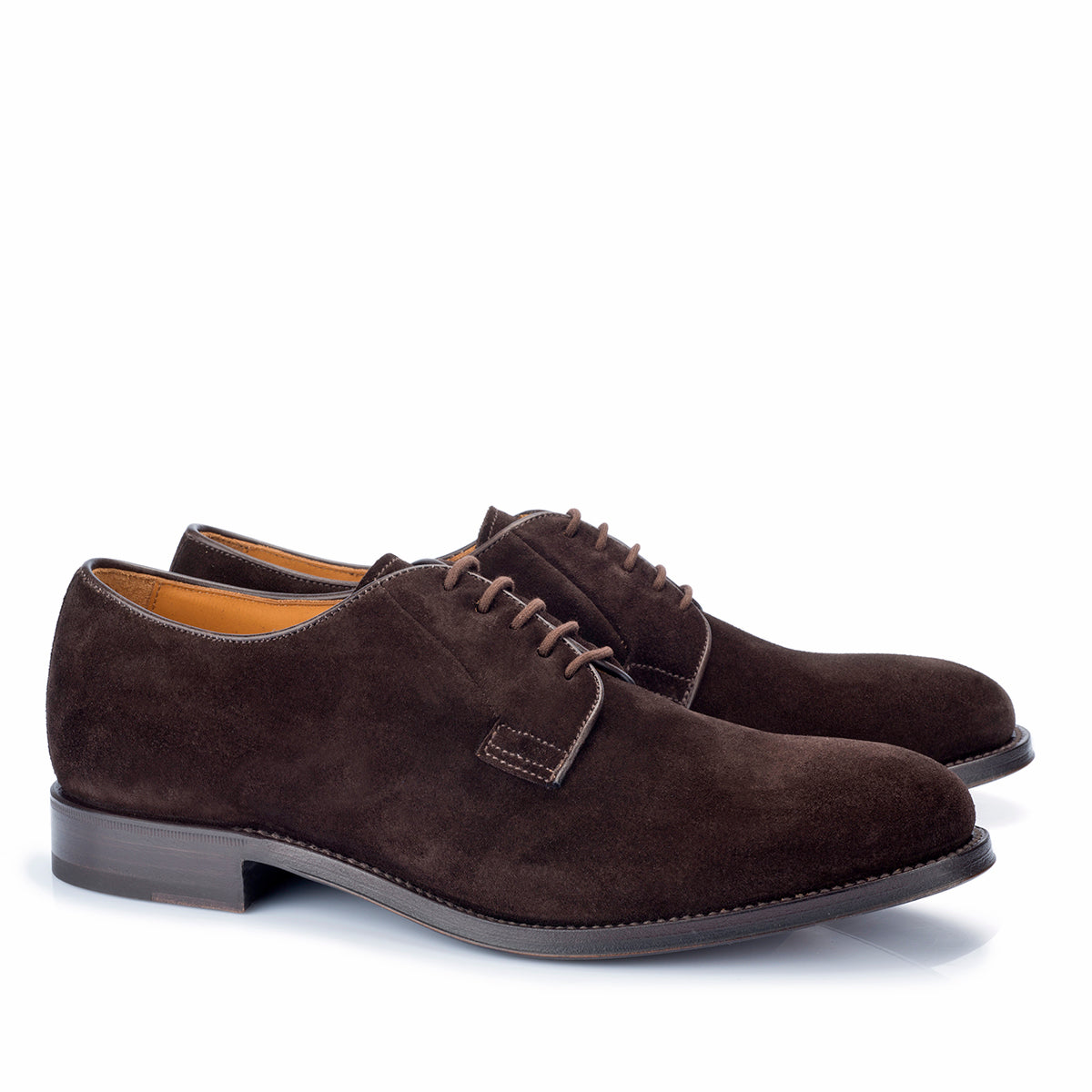 This elegant derby shoe features Goodyear construction and smooth dark brown suede leather. Its classic design and perfectly proportioned shape make it a timeless choice. The premium full-grain leather and leather sole add a unique touch to this simple yet sophisticated shoe.