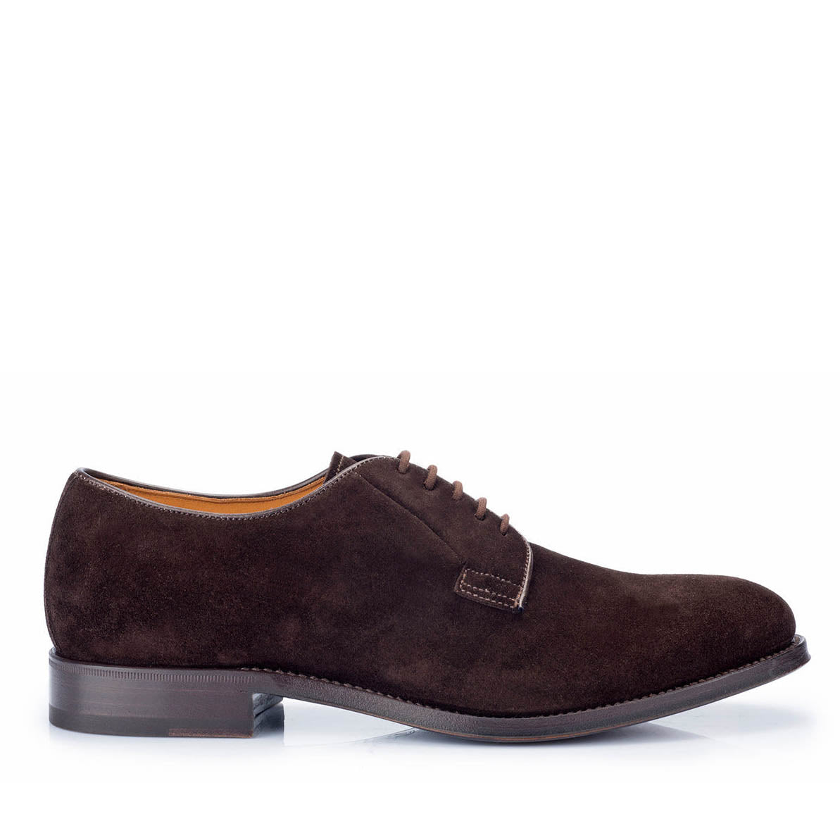 This elegant derby shoe features Goodyear construction and smooth dark brown suede leather. Its classic design and perfectly proportioned shape make it a timeless choice. The premium full-grain leather and leather sole add a unique touch to this simple yet sophisticated shoe.