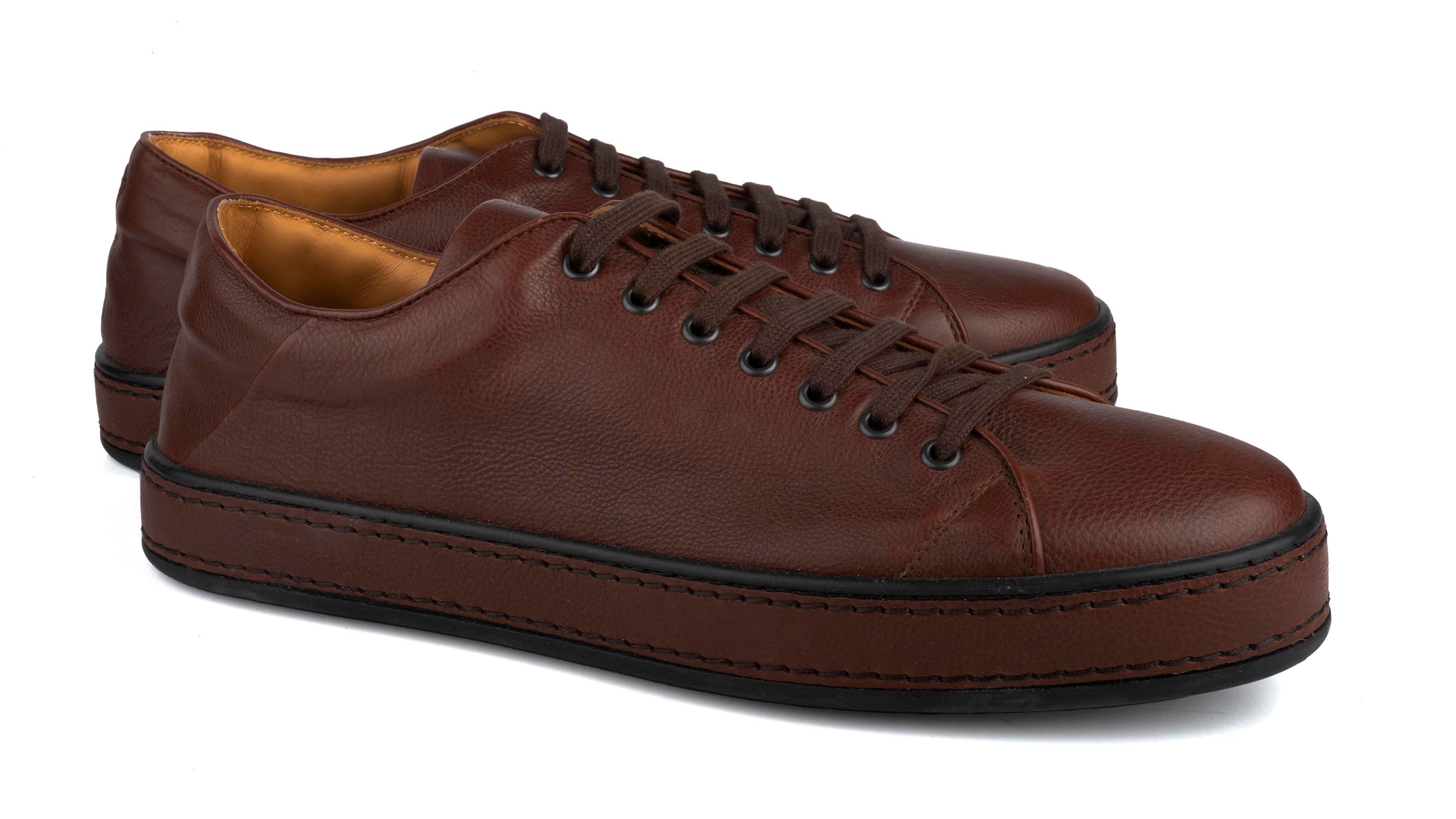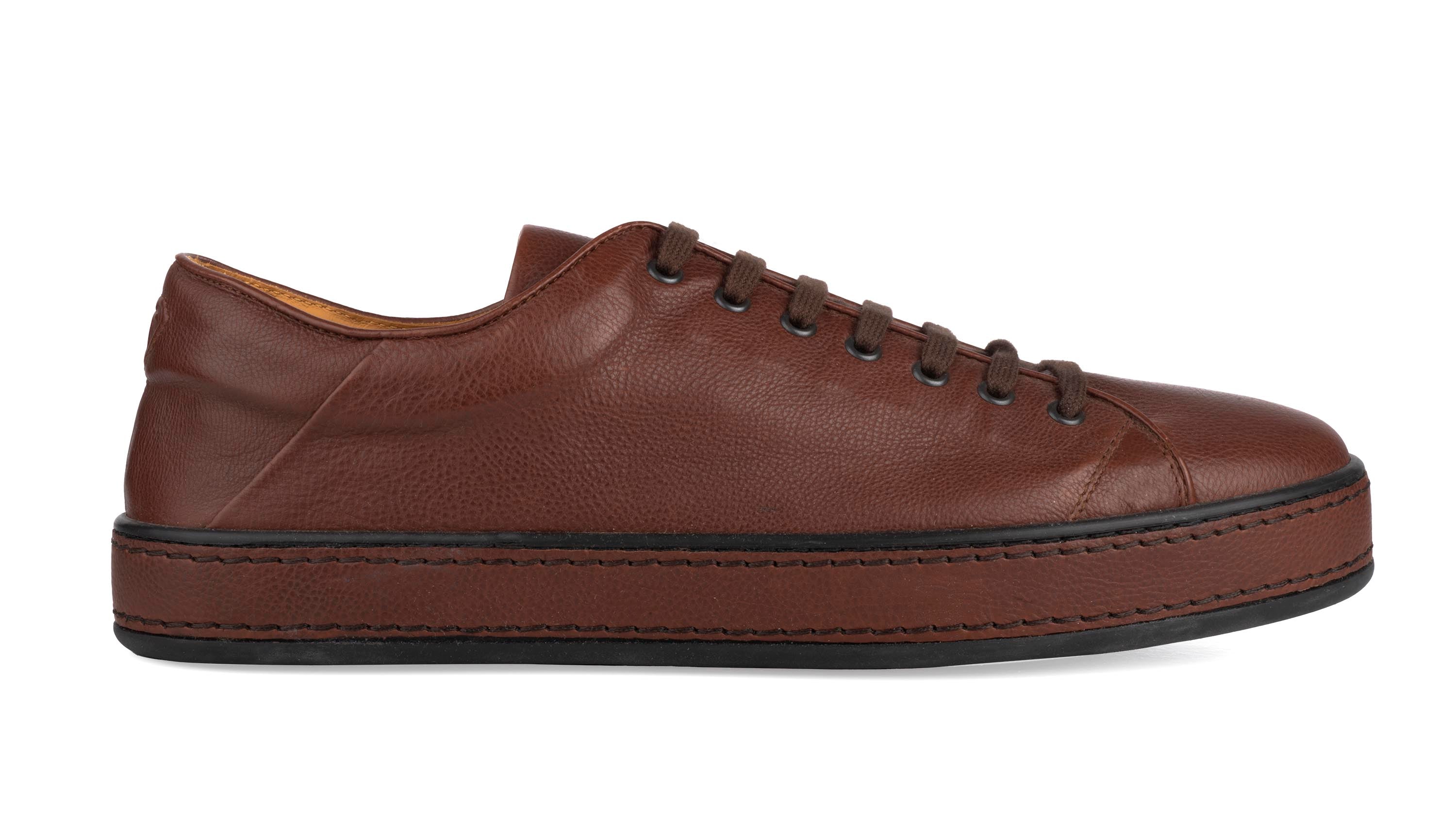The Glove 5308 Cioccolato, designed by Gianni Gallucci, features an innovative patent that provides optimal recovery post-workout. The incorporated Aloe-infused padded insole and unique memory foam bottom sole are key components in promoting restful recuperation. The sneakers also boast a soft backside and can even be worn as slides.
