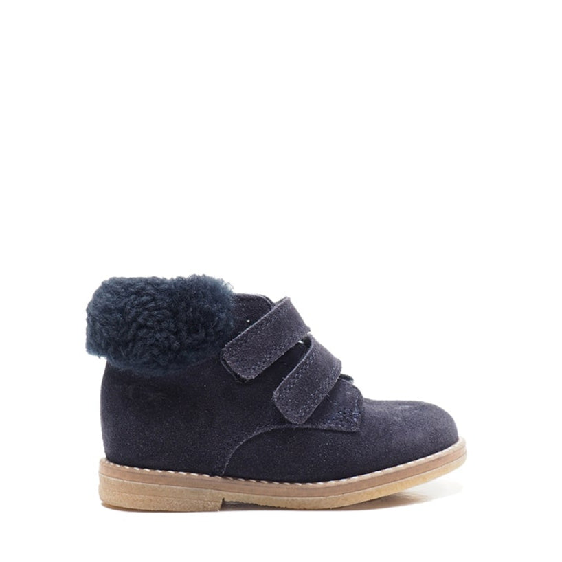 Double Strap Toddler High-Top Sneakers in Blue Calfskin Leather
