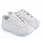 These baby shoes feature woven white leather and delicate laces, exuding elegance and sophistication. Crafted in Italy by skilled artisans using natural materials, they ensure exceptional quality and comfort for your little one. The calfskin leather sole provides a soft, comfortable fit, prioritizing your baby's well-being.