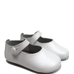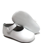 Crafted from calfskin leather, these pearl shoes feature a stylish button closure on top. Expertly made in Italy by our artisans using natural materials, they ensure both exceptional quality and your child's comfort.