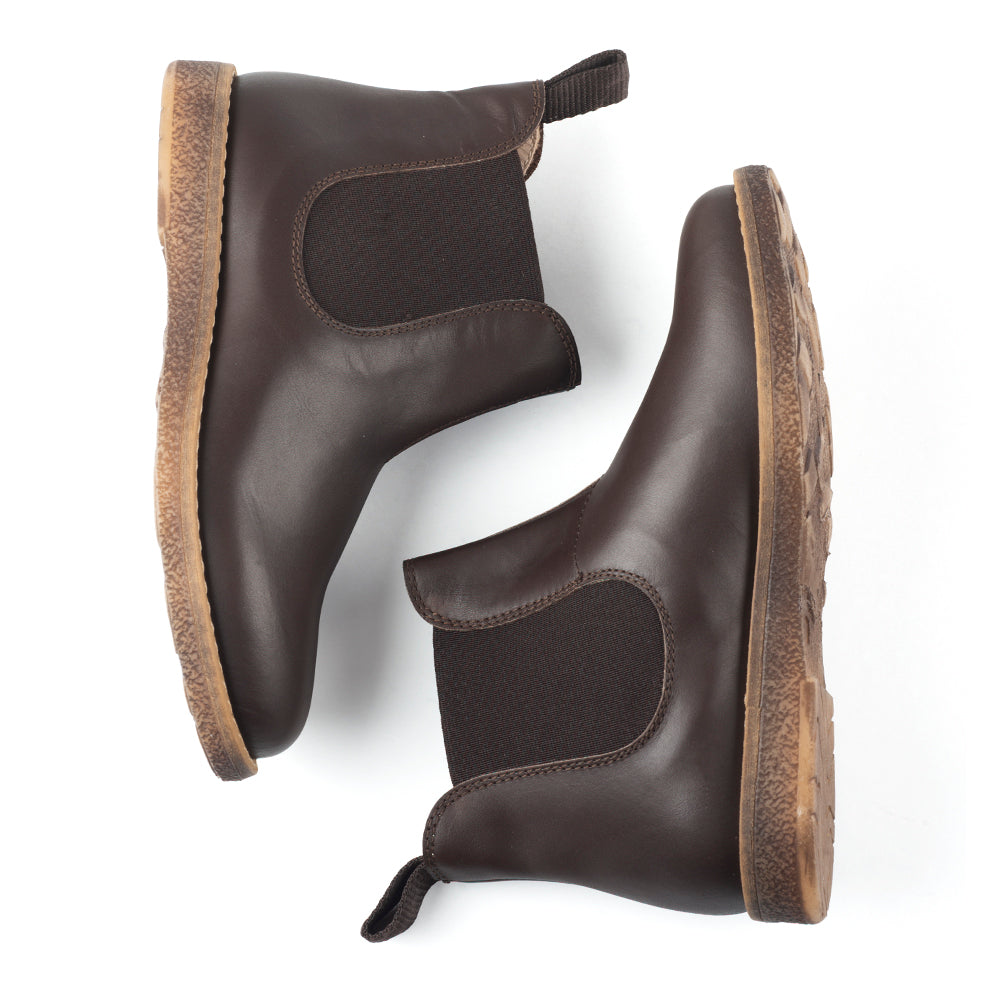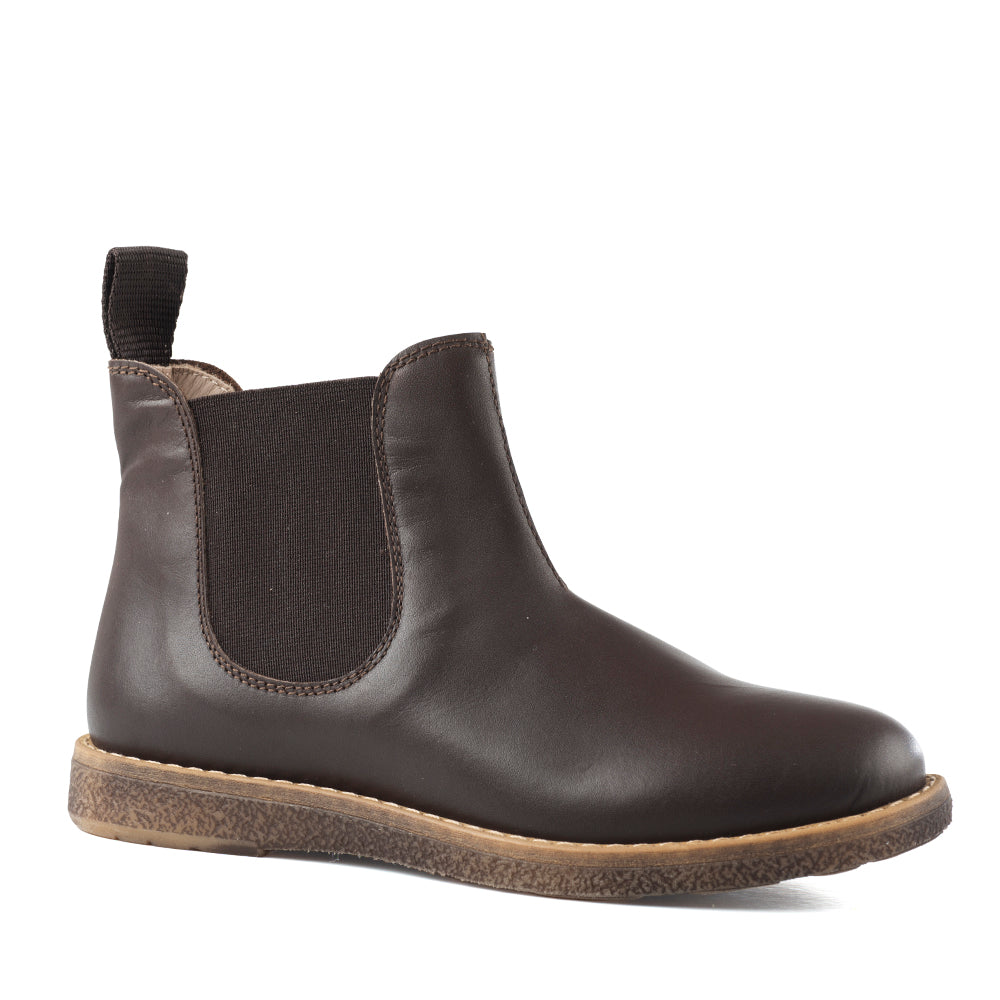Exquisite brown calfskin Chelsea boots featuring a supportive rubber sole and anatomically designed footbed. Handcrafted in Italy using premium natural materials selected to enhance your child's wellbeing and proper posture development. These refined boots combine sophisticated elegance with exceptional Italian craftsmanship.