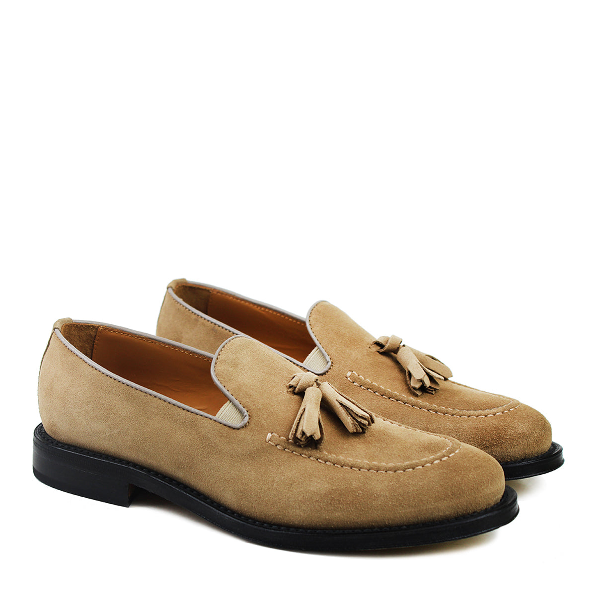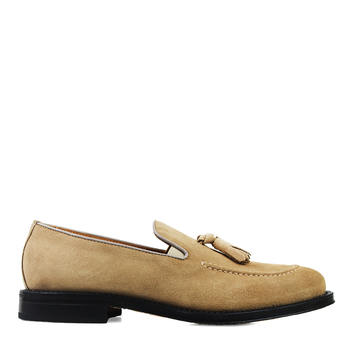 Goodyear-welt Tassel Loafer in Beige Suede Leather