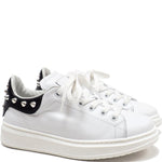 Low-Top Sneakers in White Calfskin Leather with Studs