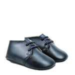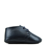 These elegant newborn Derby shoes in blue calfskin leather feature stylish laces, perfect for your little one. Crafted in Italy by skilled artisans using natural materials, they ensure both quality and your baby's comfort. The sole is made of soft calfskin leather, combining sophistication with gentle support.