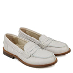 Experience the refined comfort and timeless style of our embossed white calfskin leather moccasins, part of the Gallucci kids collection. Featuring a rubber sole and ergonomic insole, these Italian-made shoes are crafted by skilled artisans using natural materials to support your child's posture and well-being. Elegant, high-quality footwear designed with care for your little one.