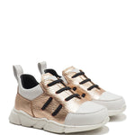 Crafted in Italy by skilled artisans, these running shoes feature champagne-colored elk leather with a metallic finish and elastic laces. Designed with natural materials, they ensure your child's comfort and well-being. The rubber sole provides excellent stability, while the ergonomic insole supports proper posture. Stylish and thoughtfully made for your child’s active lifestyle.