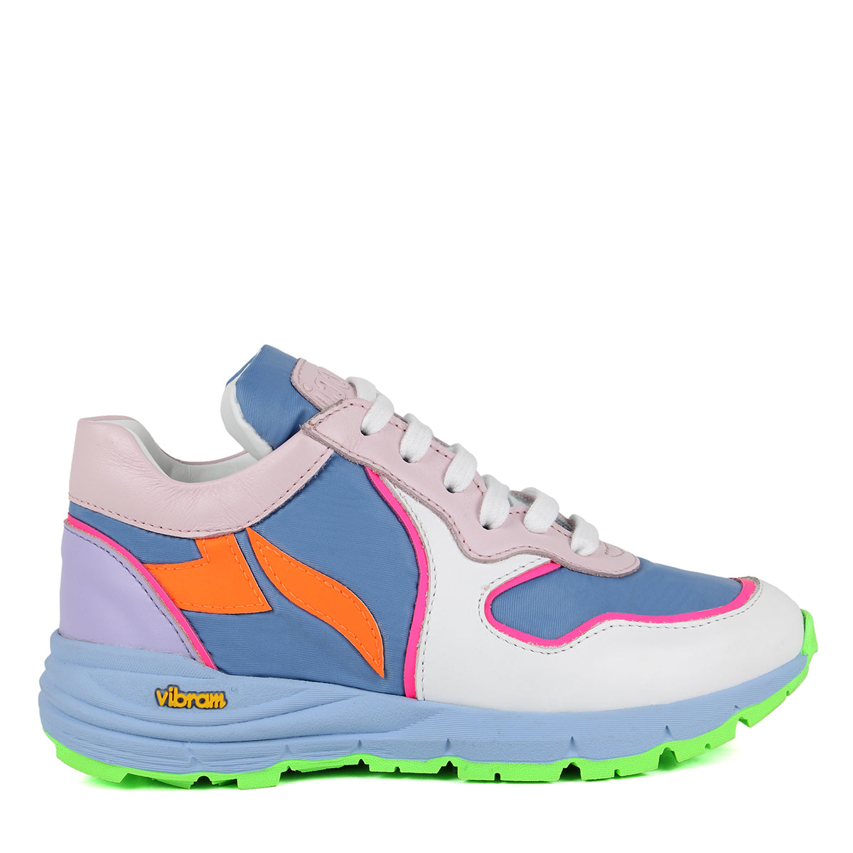 Expertly crafted with a combination of leather and fabric materials, these children's sneakers feature a Vibram sole for enhanced grip and postural support. The upper is made from high-quality leather and fabric proudly produced in Italy.