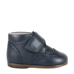 Designed for your baby's first steps, these navy calfskin Paraboot brogue shoes offer easy fastening with a practical velcro strap. Made in Italy by expert artisans using natural materials, they guarantee superior quality and comfort for your child. The rubber sole enhances stability, while the ergonomic insole promotes proper posture. Combining style and care, these shoes are an elegant choice that supports your little one's well-being.